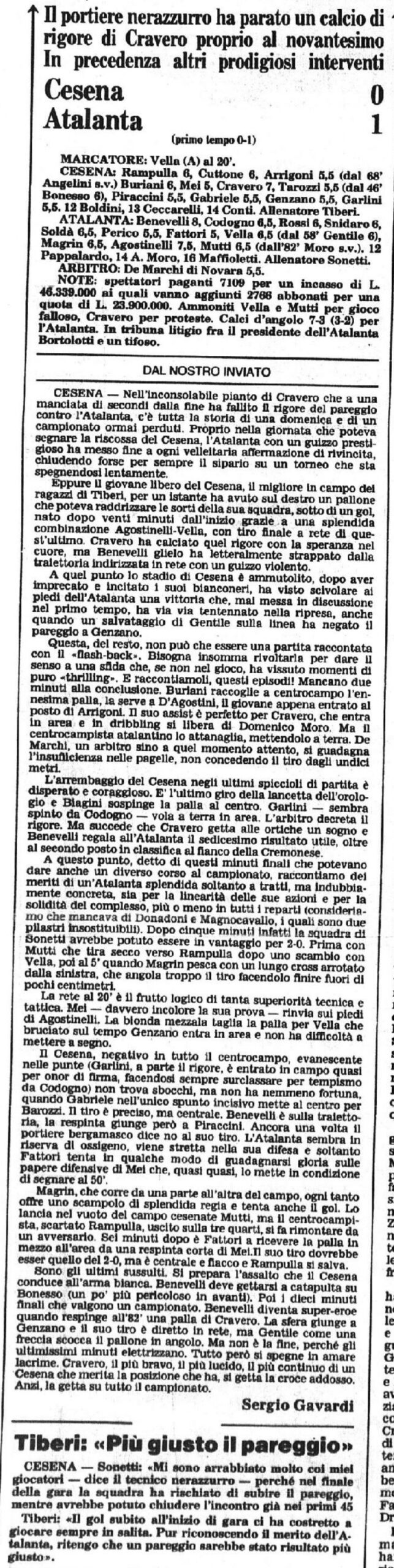 Edison Campionissimi Cartellini 1984-85 Cuttone in azione in Cesena-Atalanta 1983-84