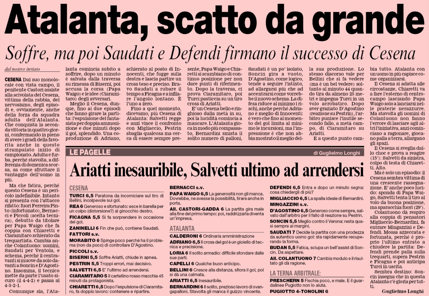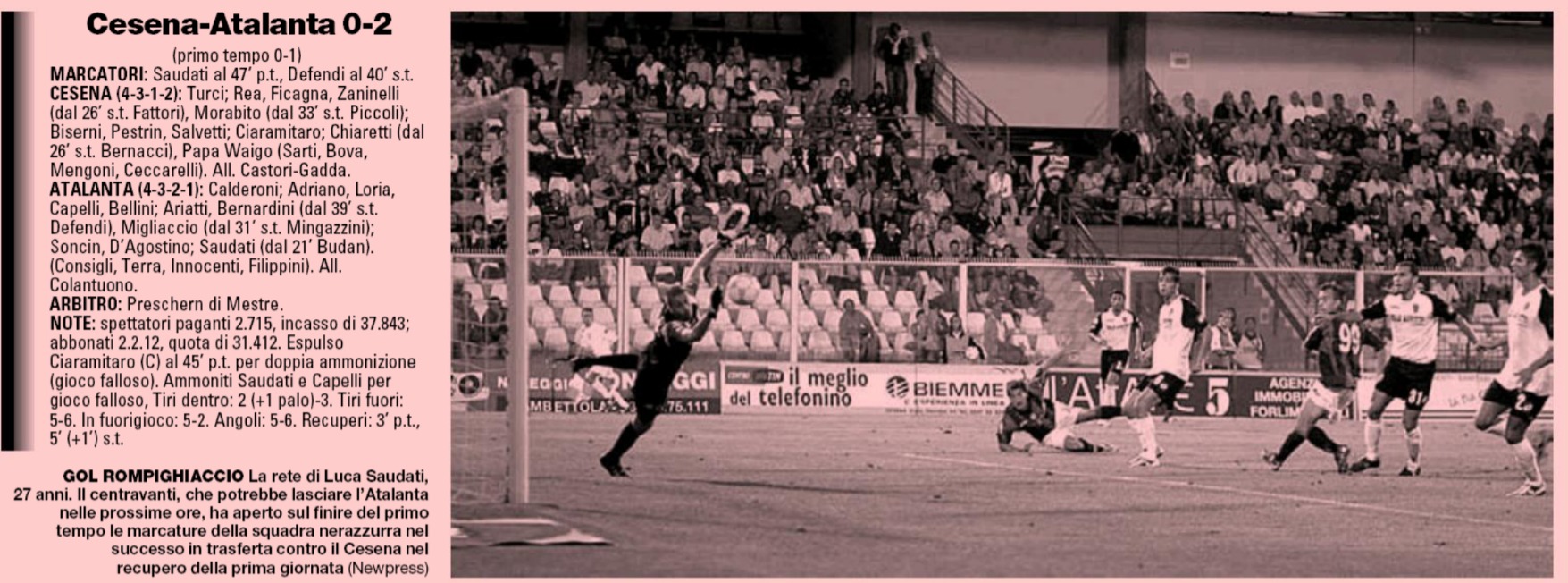Fonte: “Cesena Calcio, una storia unica“, Geo Edizioni L'articolo della Gazzetta dello Sport L'articolo della Gazzetta dello Sport CESENA-FIORENTINA 2005-06 (coppa Italia) VICENZA-CESENA 2005-06