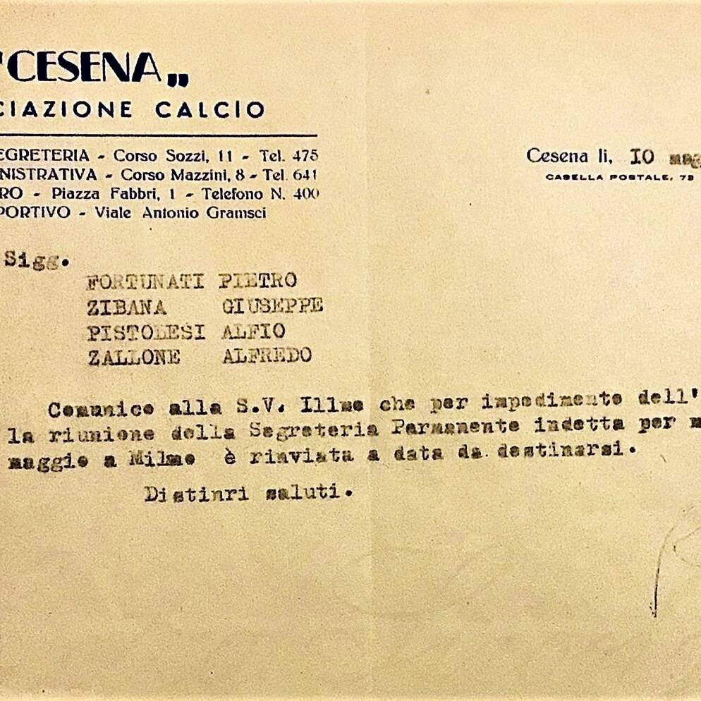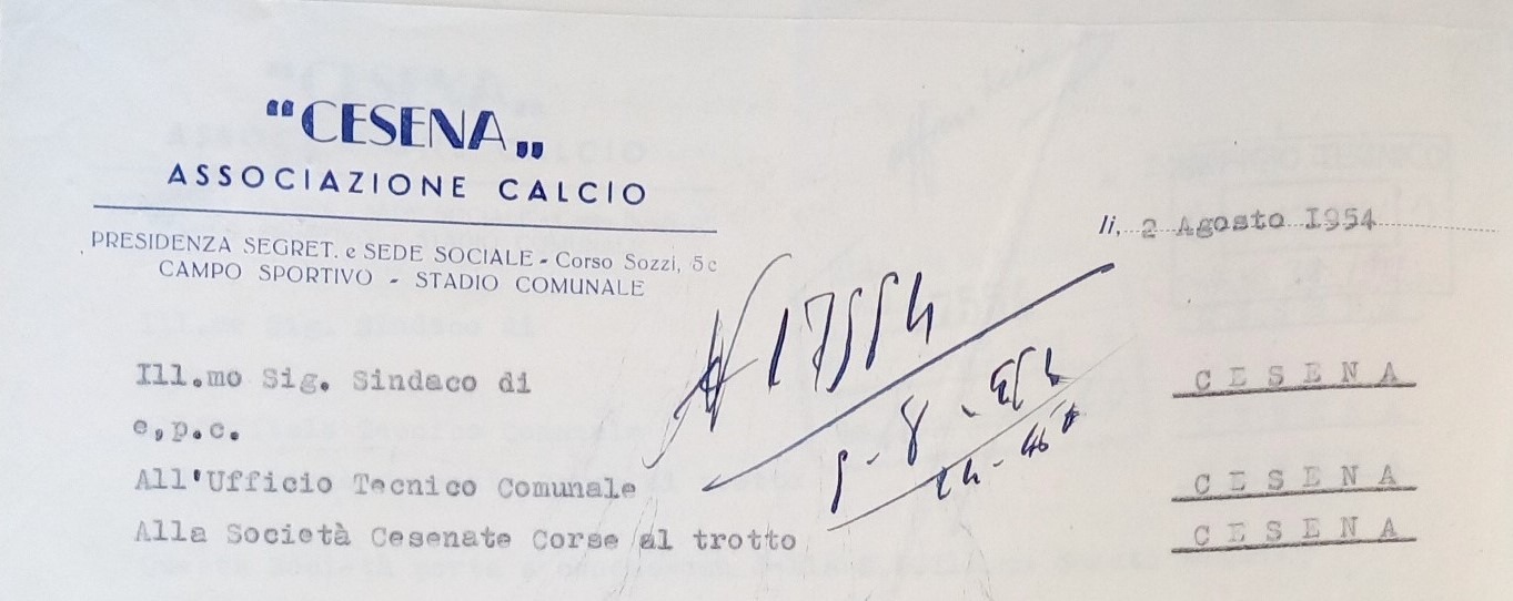 Carta intestata A.C. Cesena 1954-55