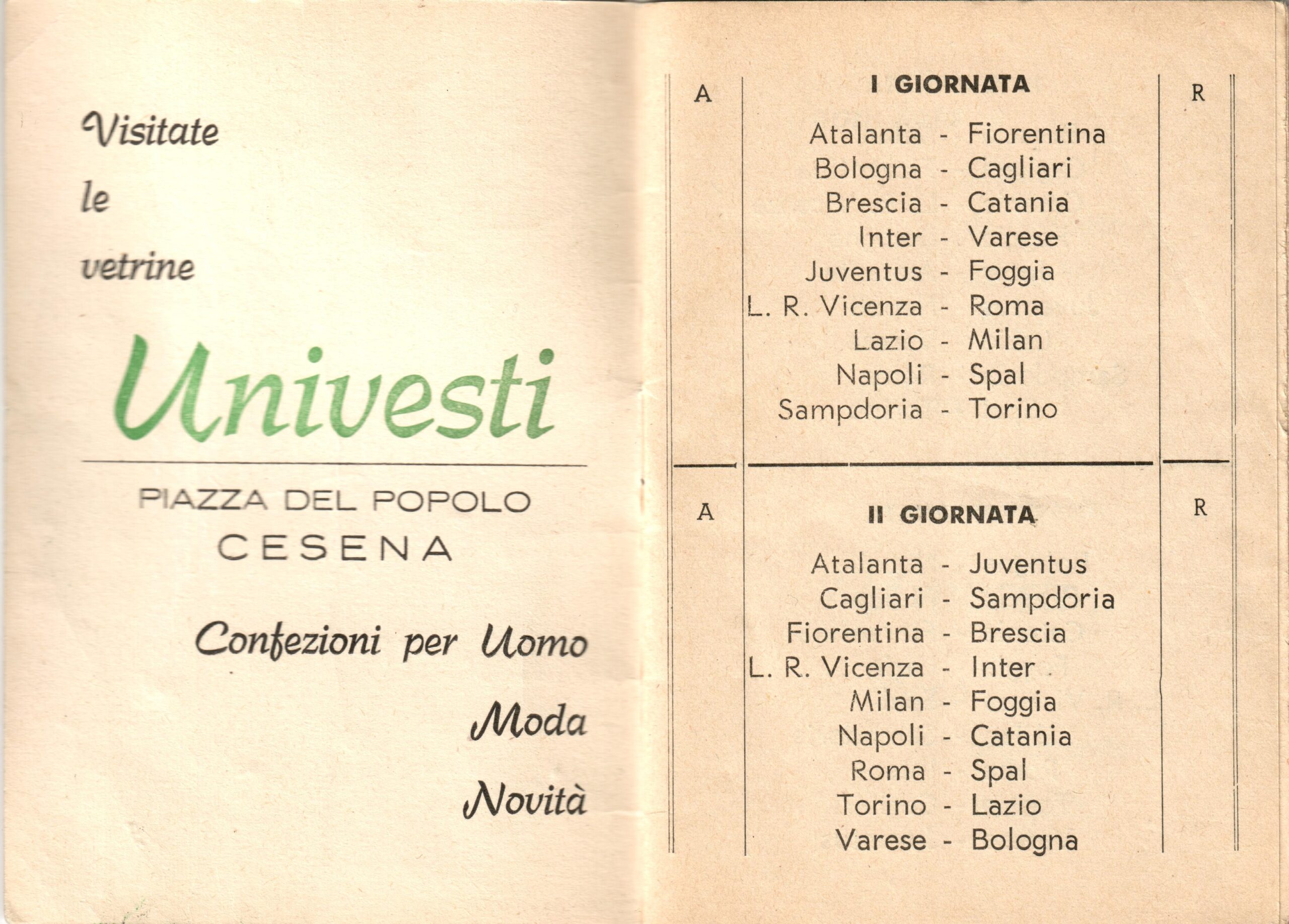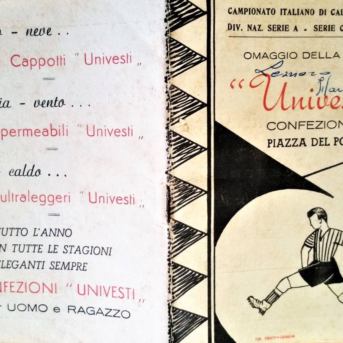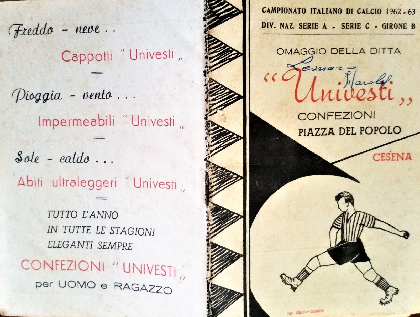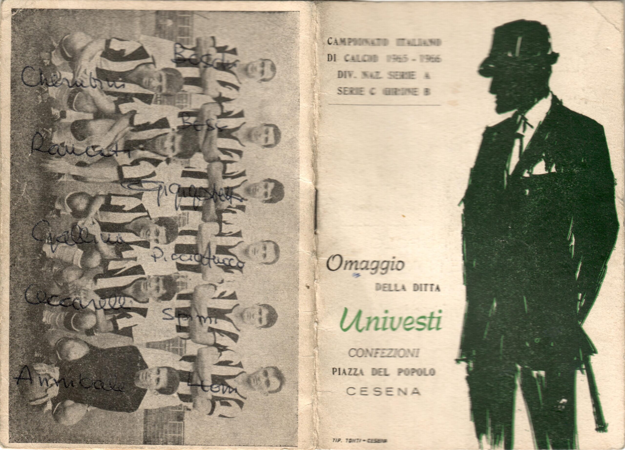 Calendario Univesti 1965-66 terza di copertina