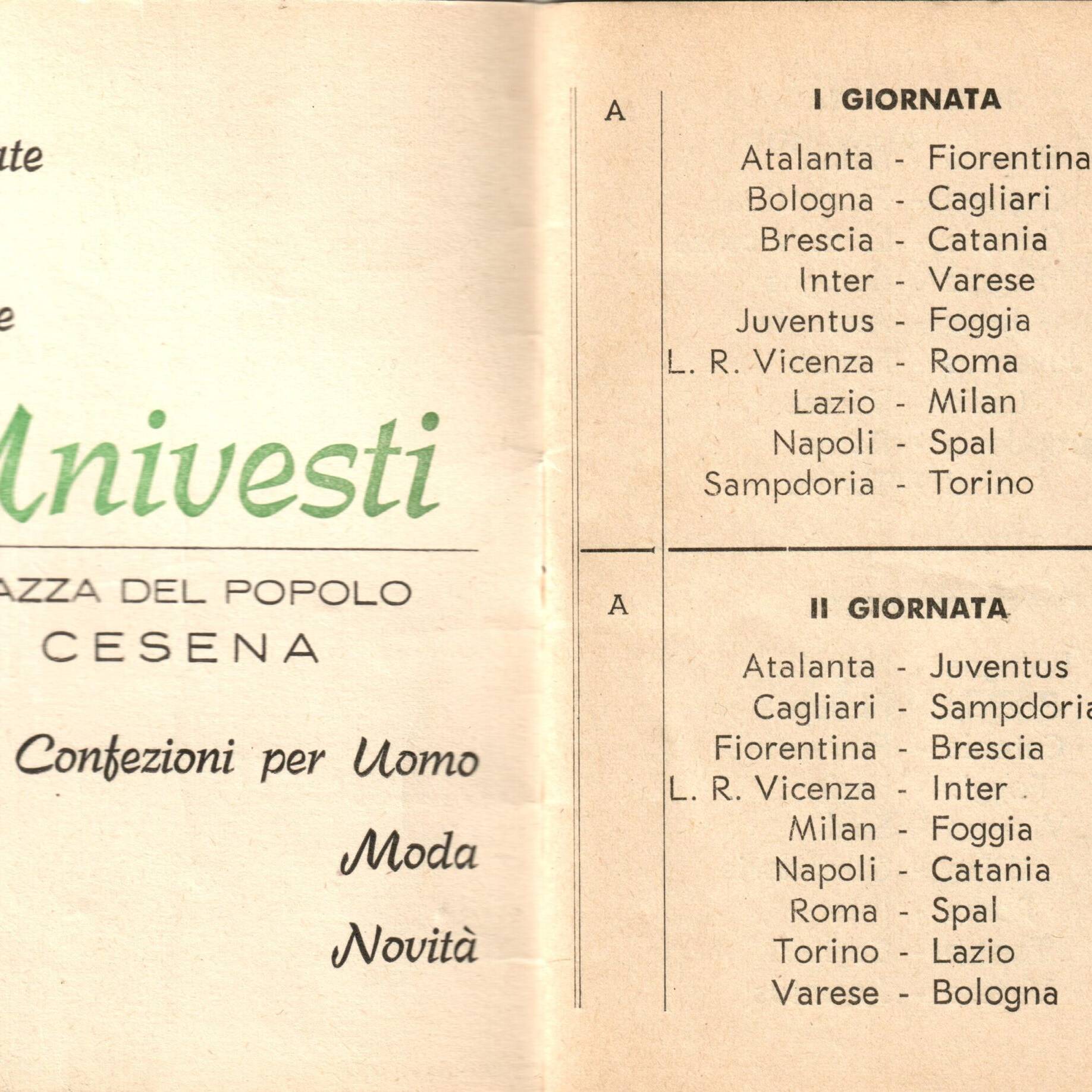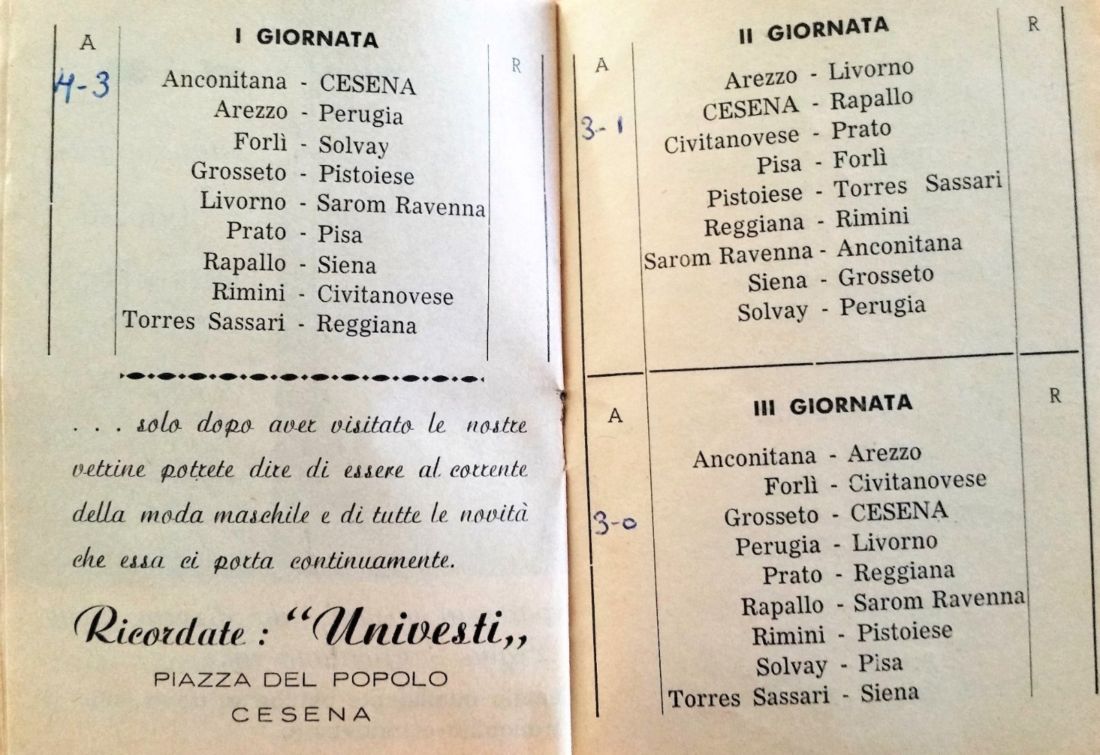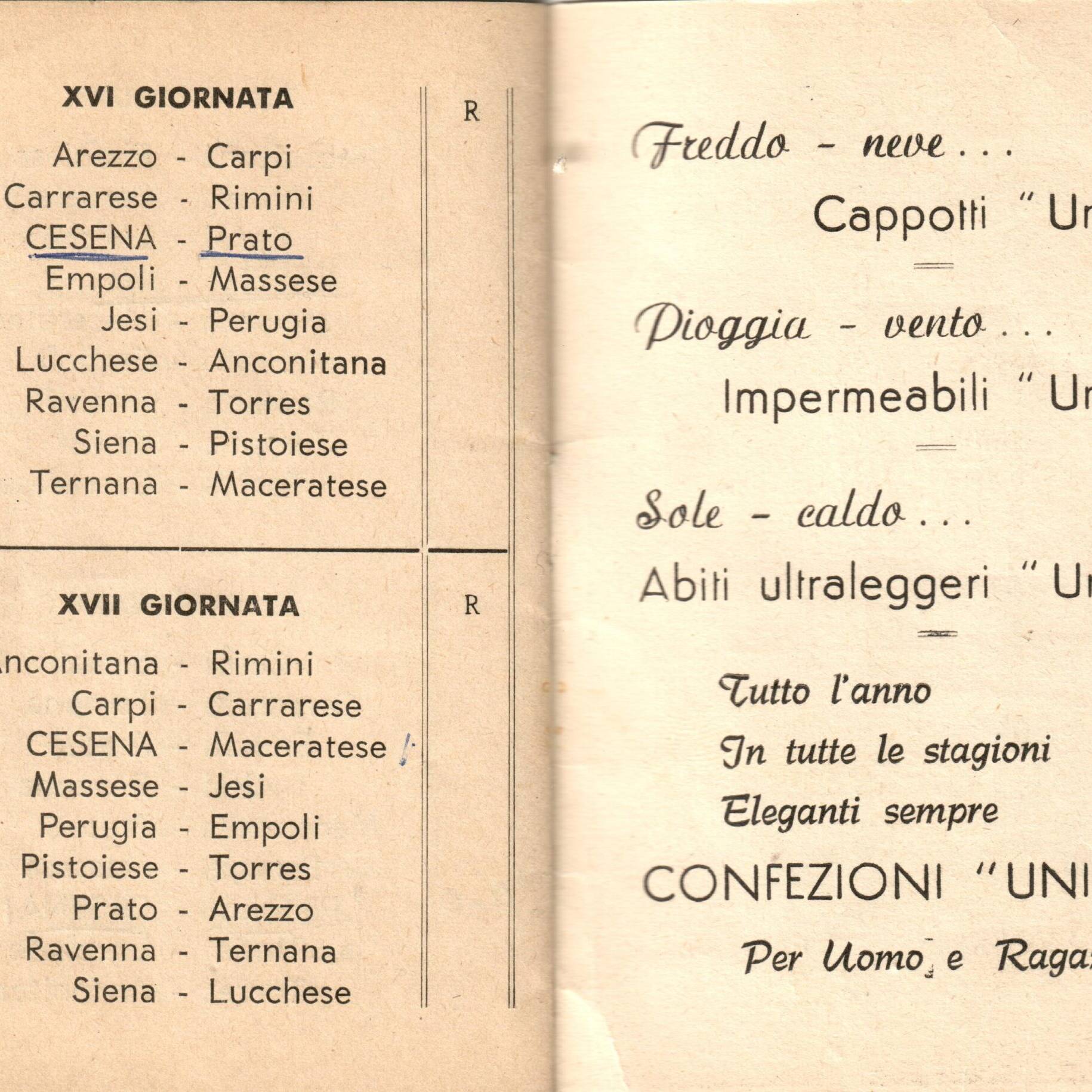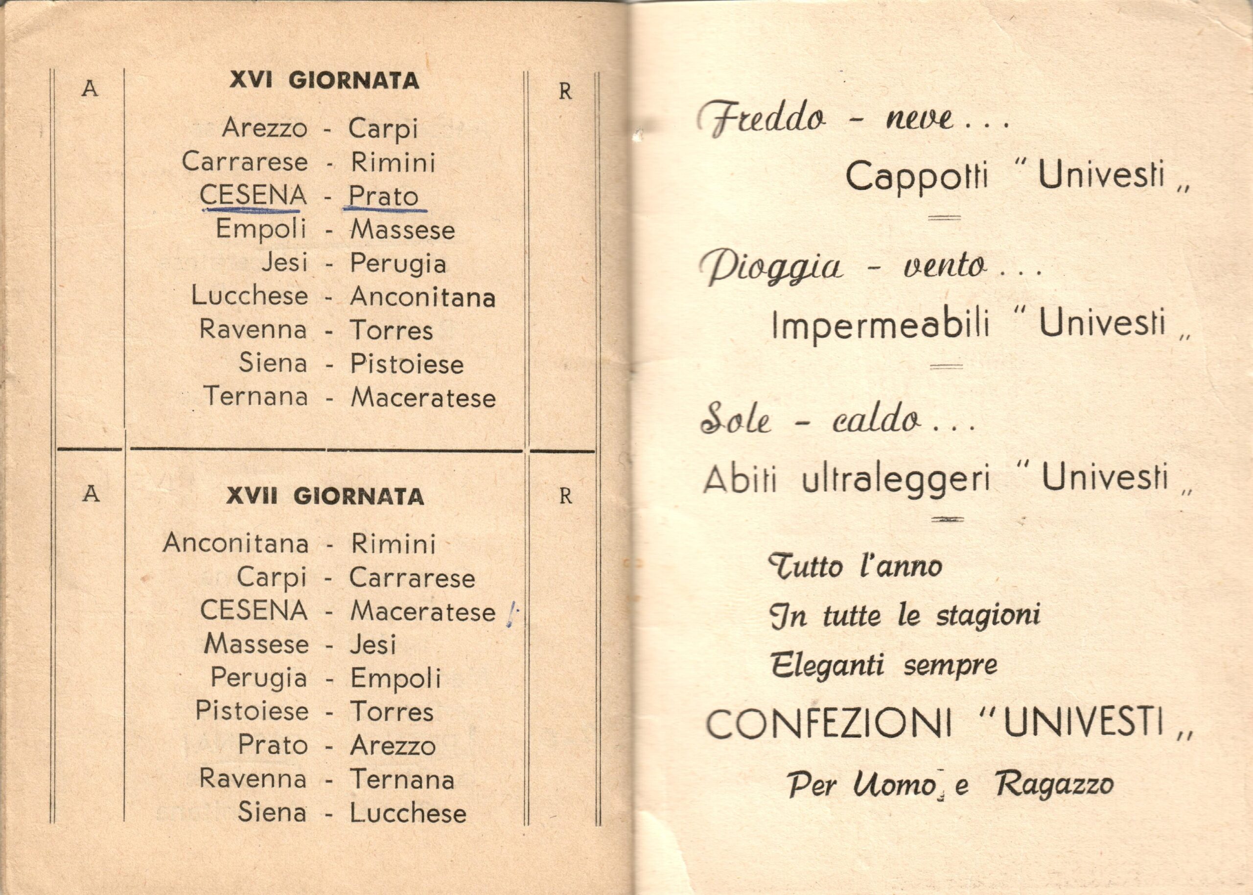 Calendario Univesti 1965-66 terza di copertina