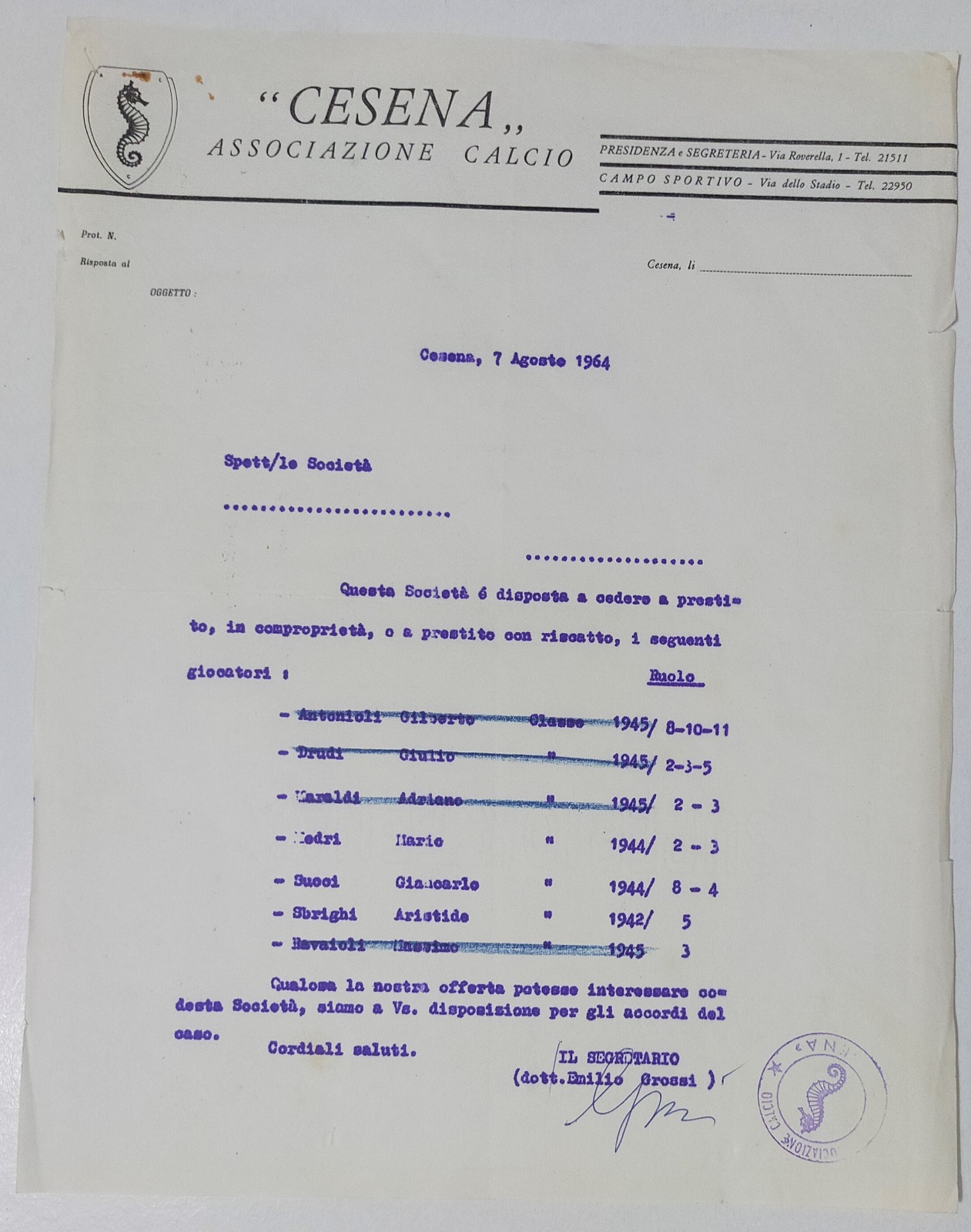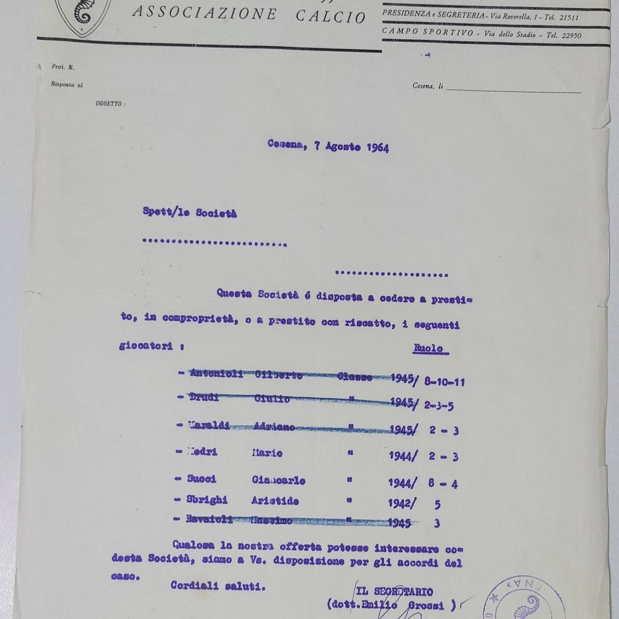 Carta intestata A.C. Cesena 1964-65
