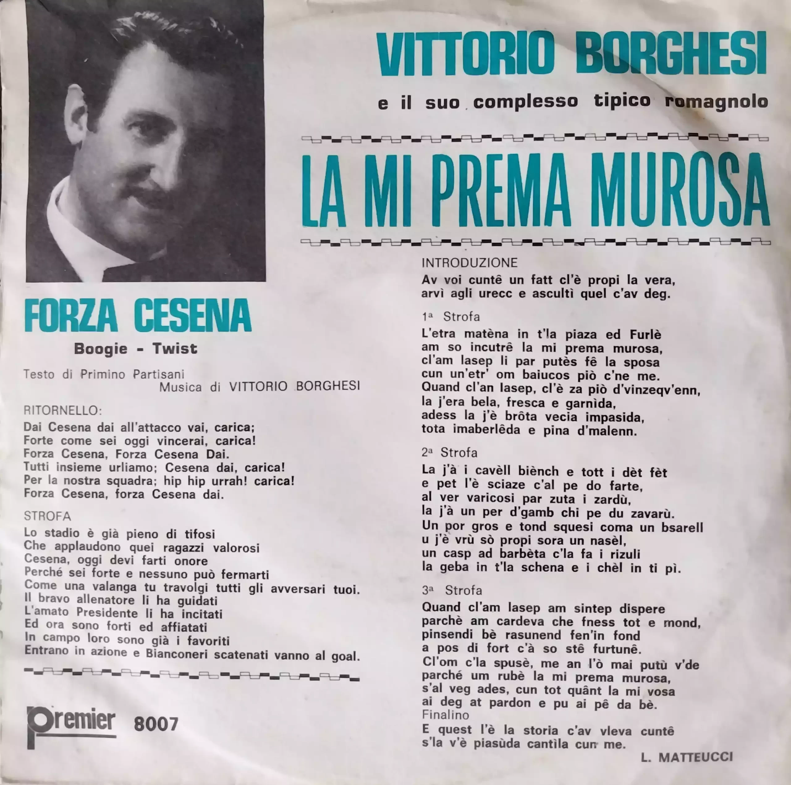Disco Forza Cesena, Vittorio Borghesi retro con testi