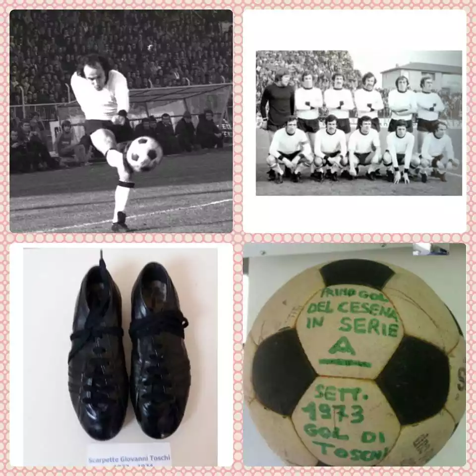 Scarpini e pallone (con data sbagliata…) per il primo gol in serie A di Giovanni Toschi in Cesena-Verona 1973-74