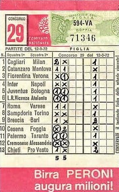 Schedina 12 marzo 1972, Cesena-Foggia 1971-72