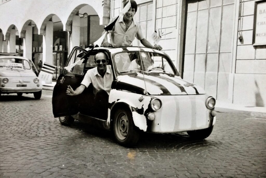 La Fiat Balilla del Club Forza Cesena addobbata per la promozione in B (1968-69)