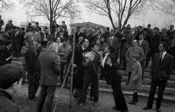 Cesena-Sambenedettese 1967-68. Disordini tra le opposte tifoserie (foto Palmas)