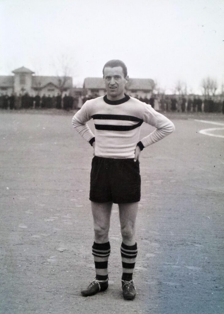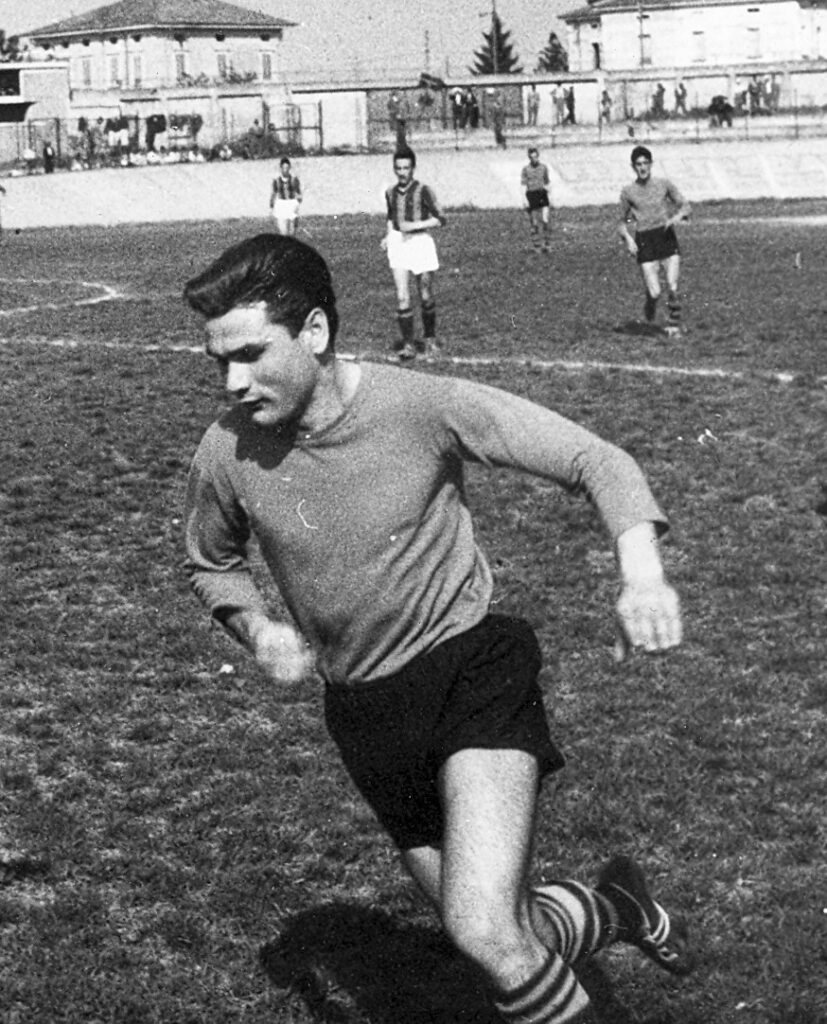 Margarita con la nuova maglia a bande nere orizzontali Vanz in maglia azzurra per Mantova-Cesena 1948-49 Indietro PrecedenteProssimo