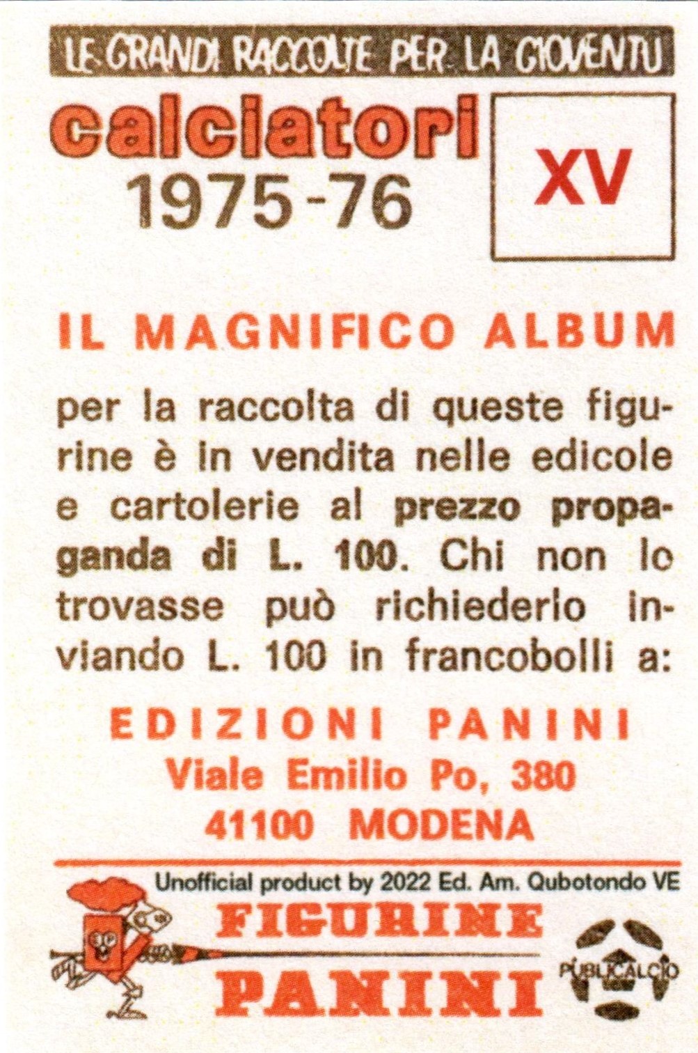 Panini Calciatori 1975-76 Edizione Amatoriale retro