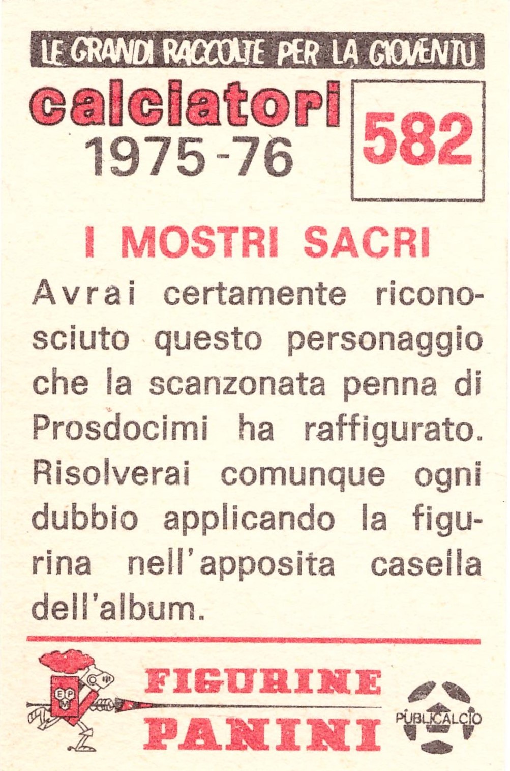 Panini Calciatori 1975-76 Mostri Sacri retro