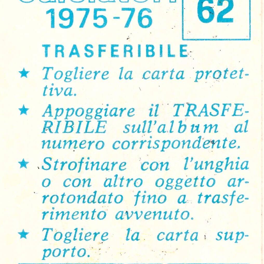 Panini Calciatori 1975-76 Trasferello retro
