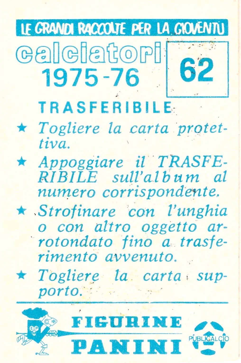 Panini Calciatori 1975-76 Mascotte Trasferello applicato