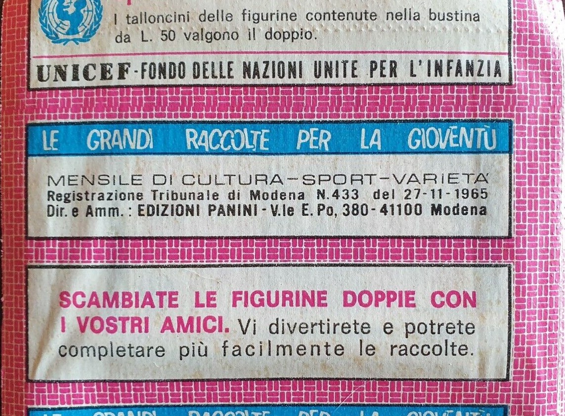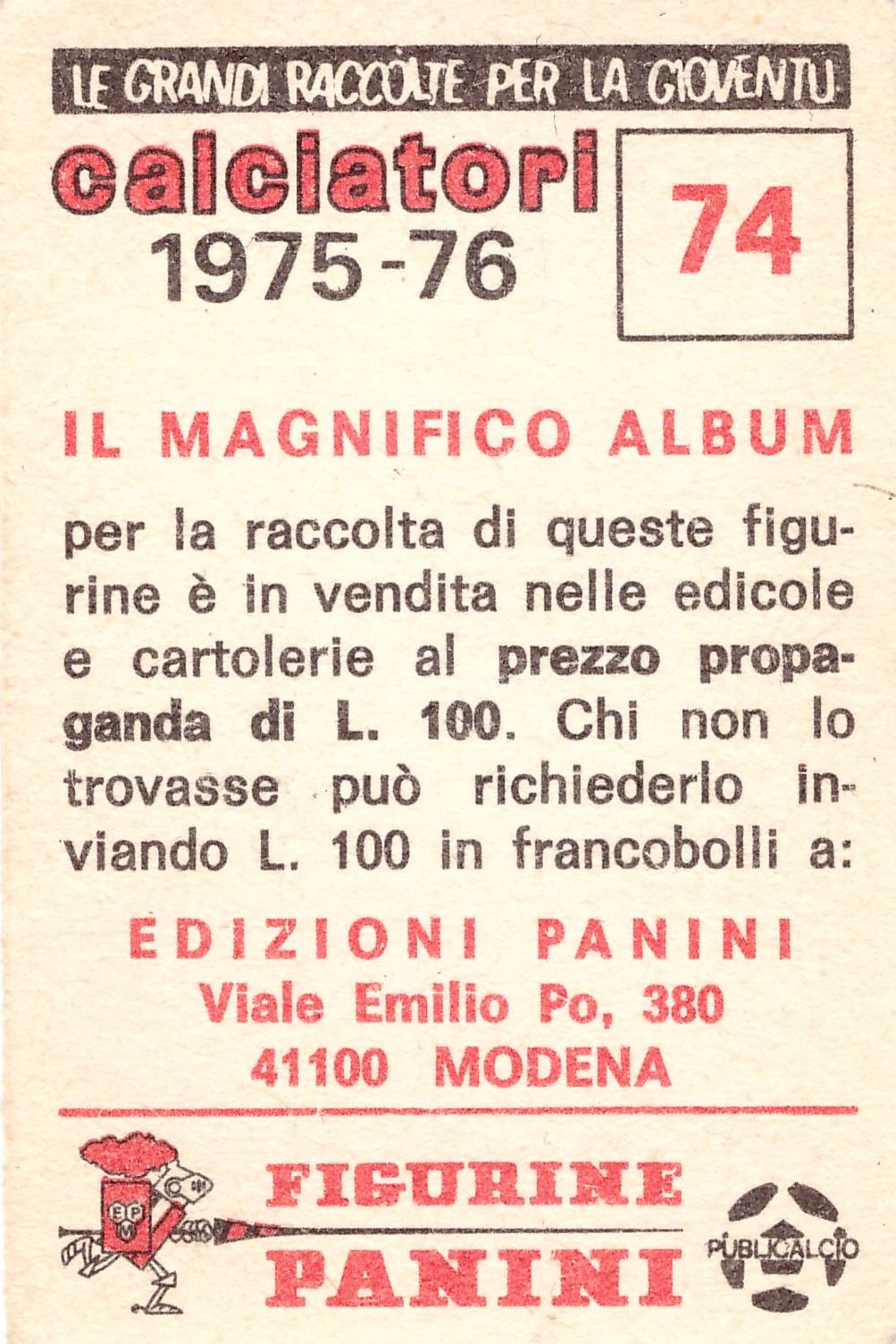 Panini Calciatori 1975-76 bustina retro