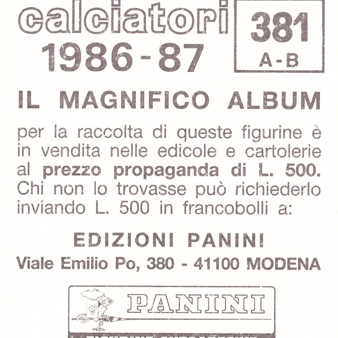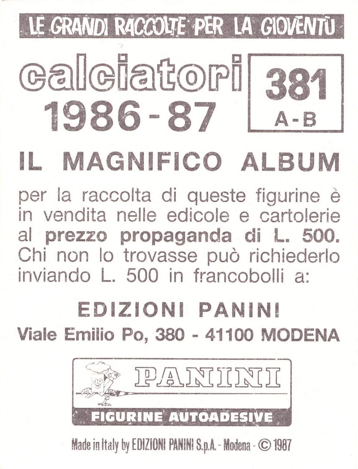 Panini Calciatori 1986-87 Slogan