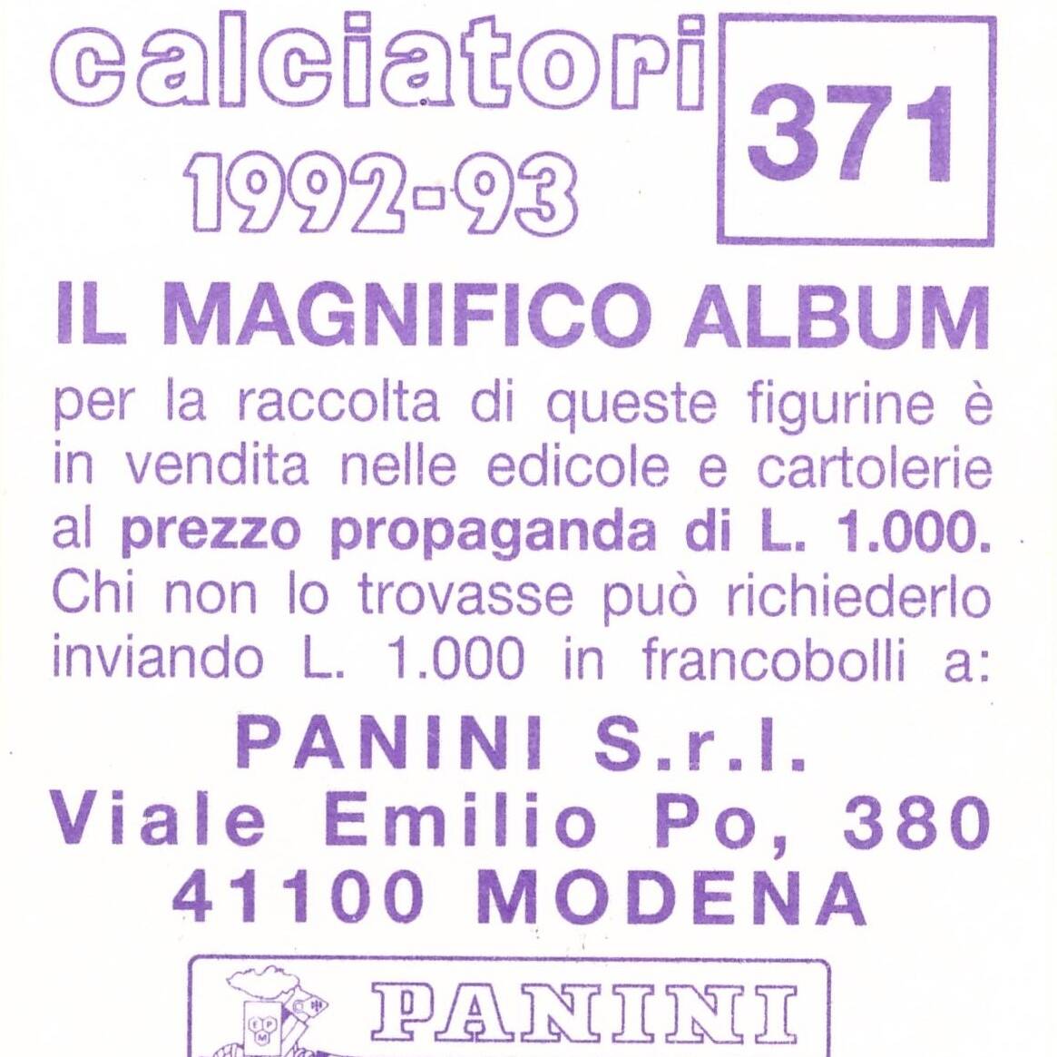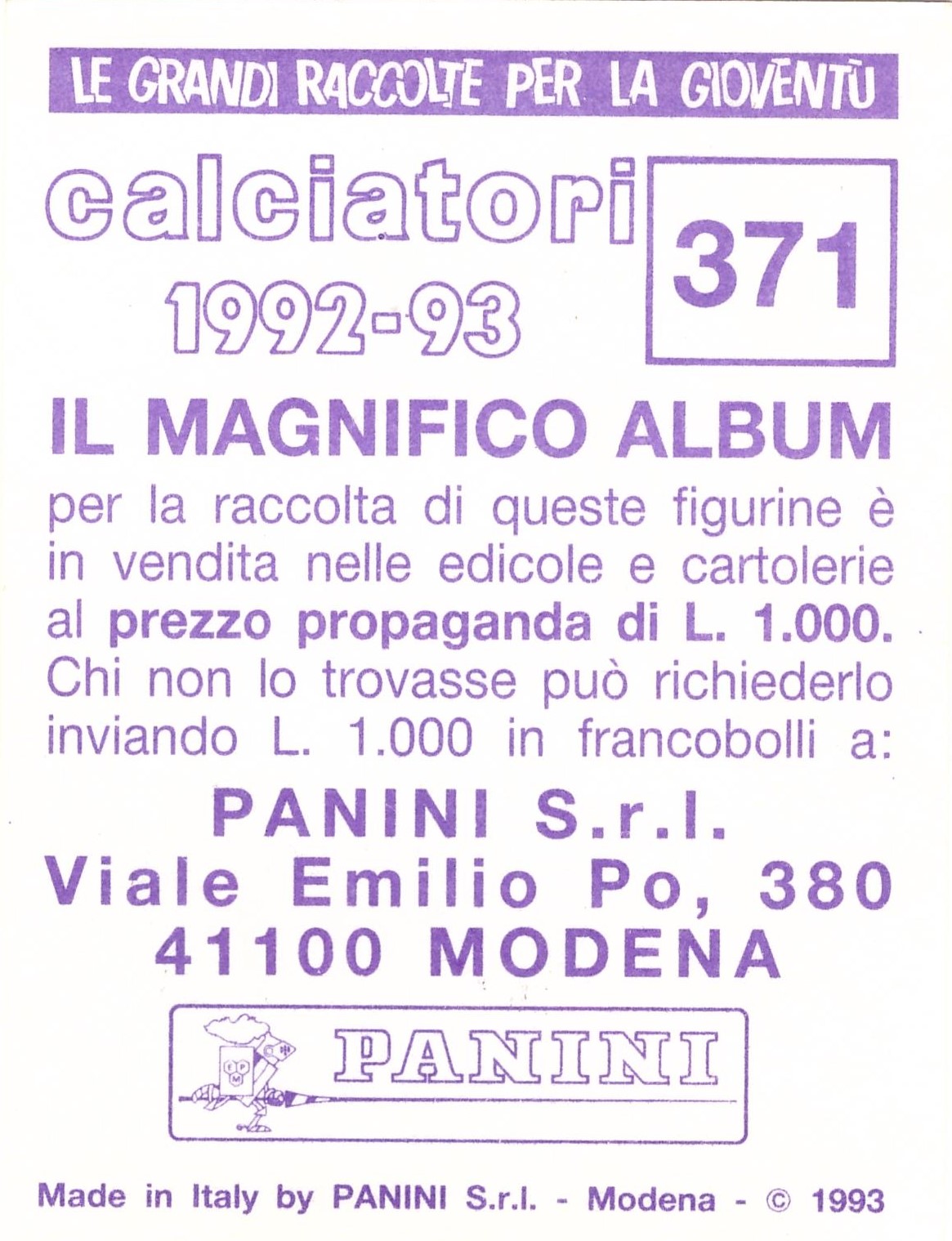 Panini Calciatori 1992-93 retro