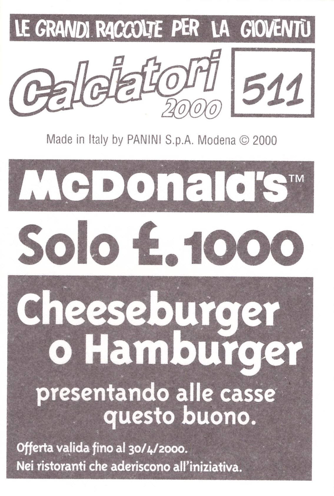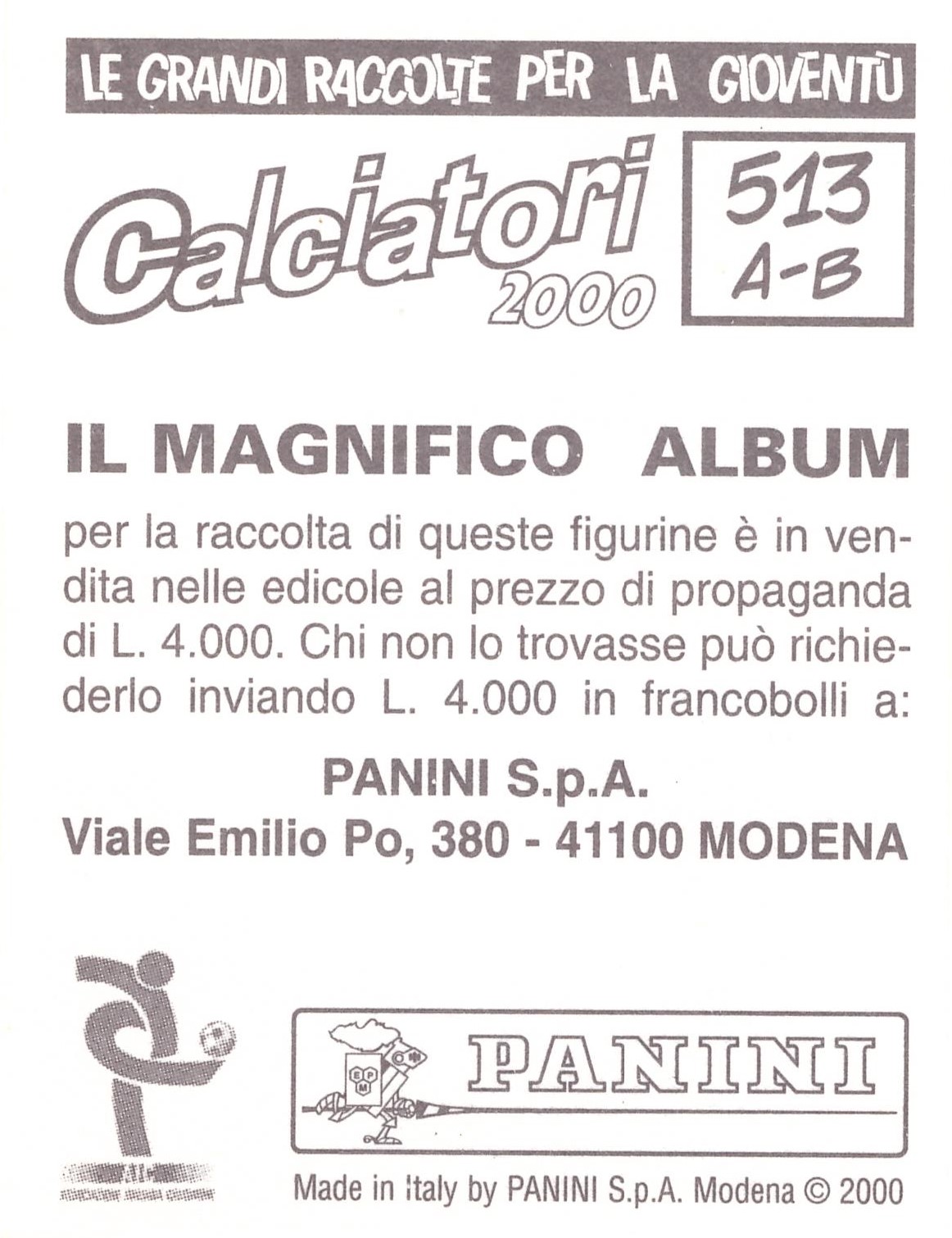 Panini Calciatori 1999-00 bustina retro