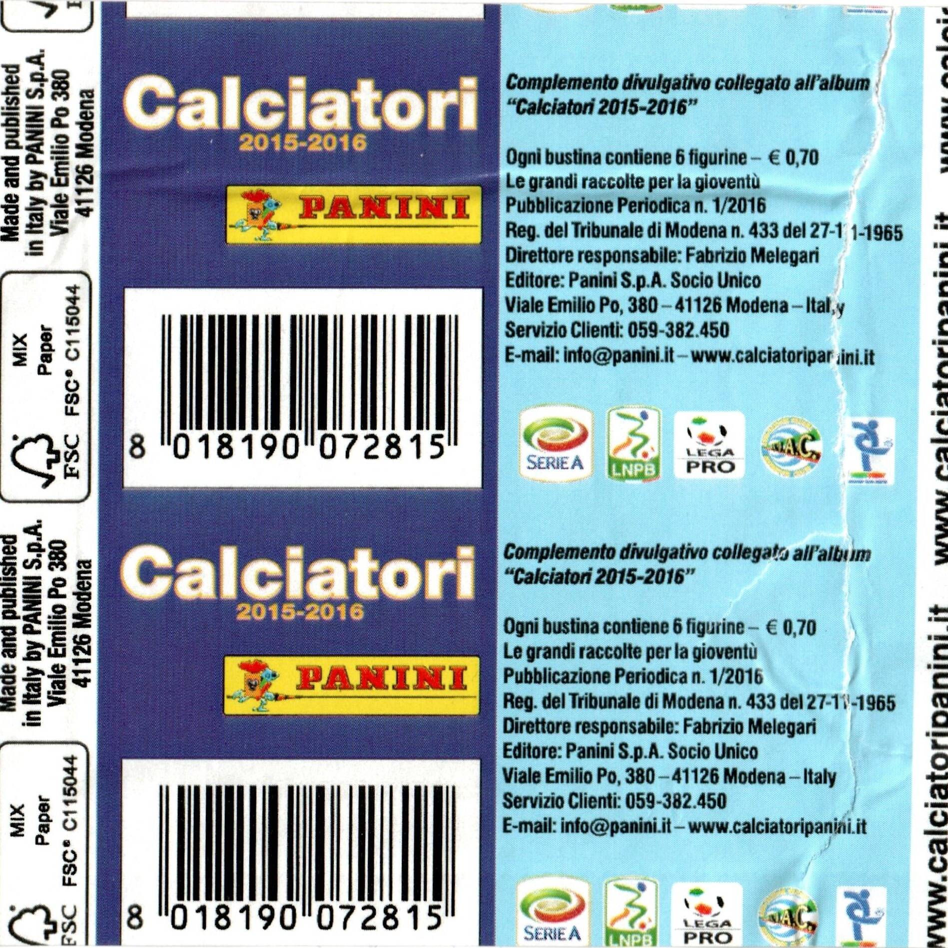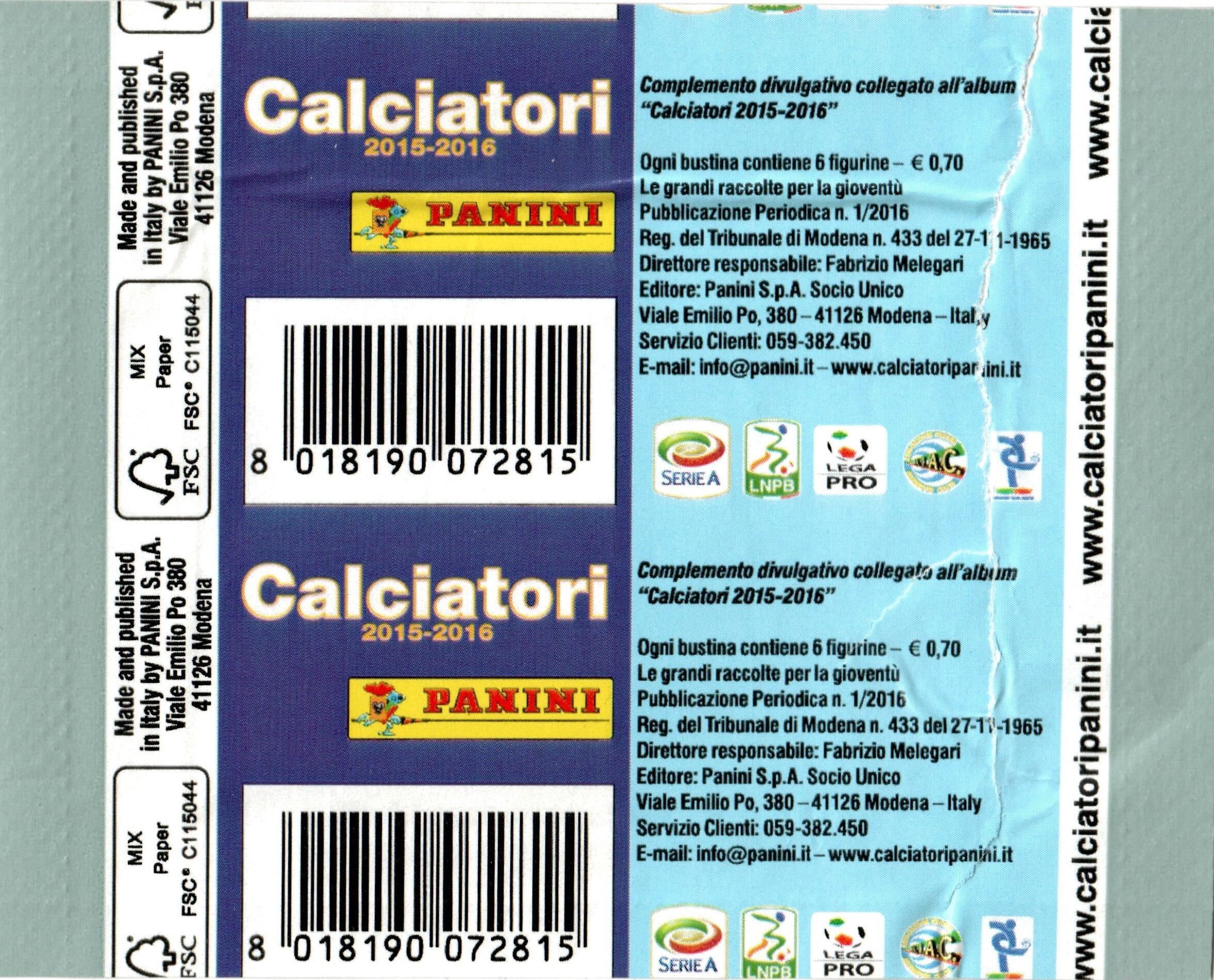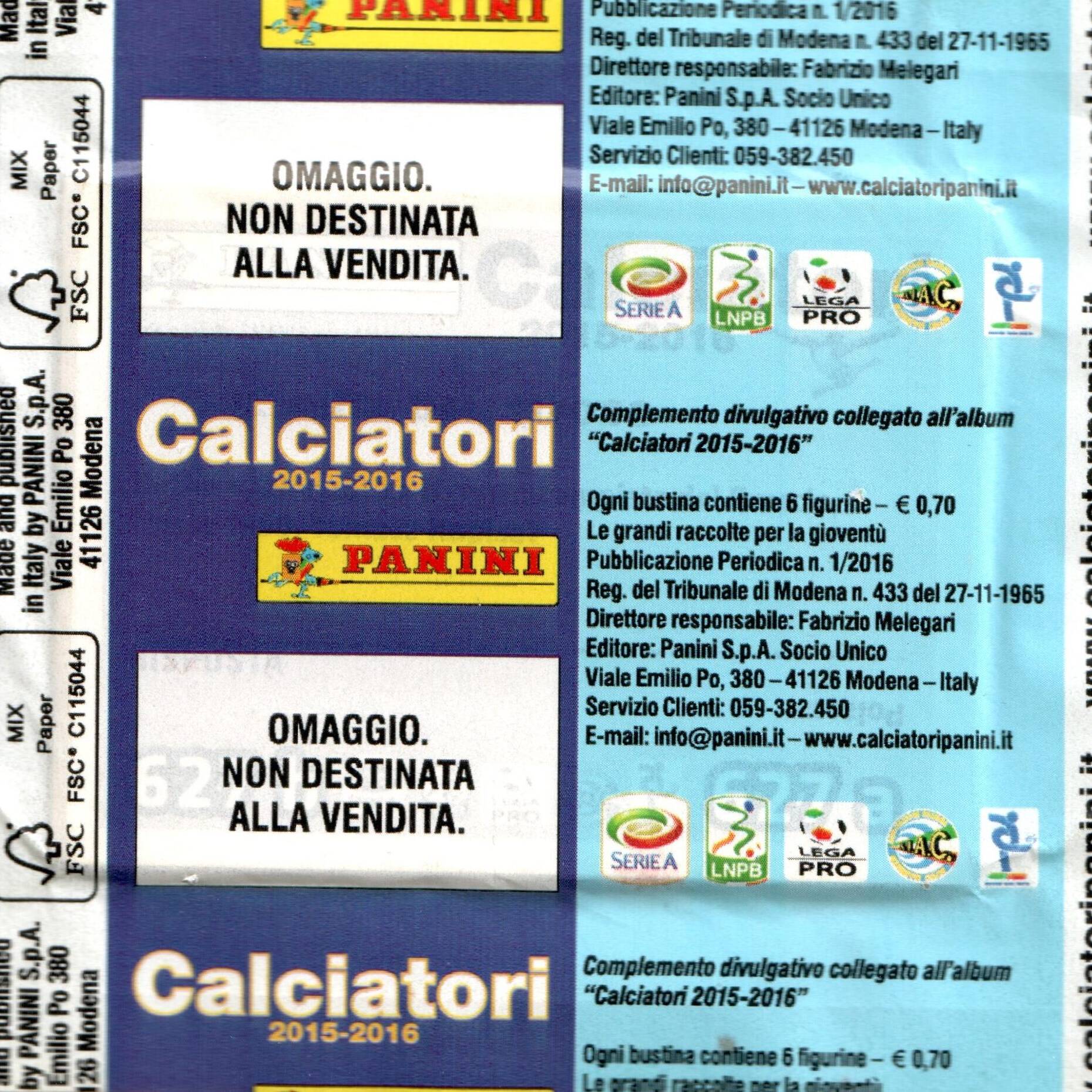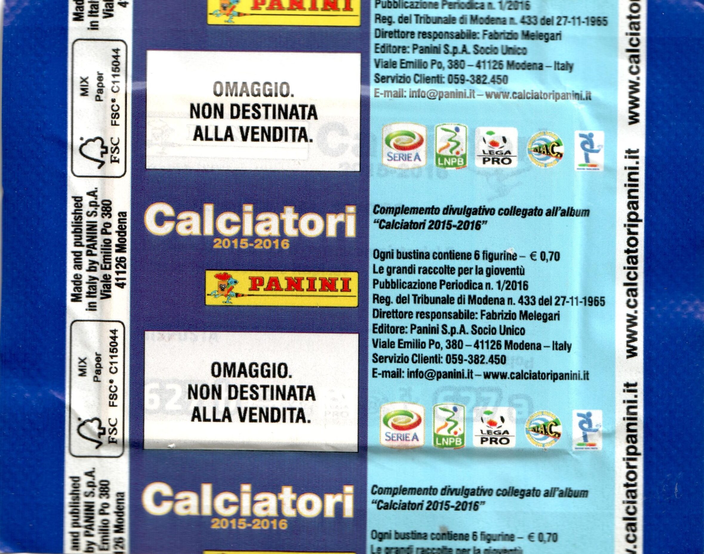 Panini Calciatori 2015-16 bustina omaggio retro