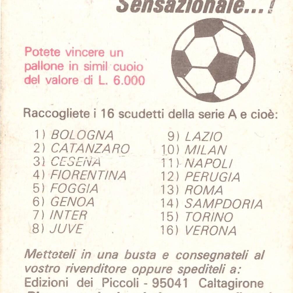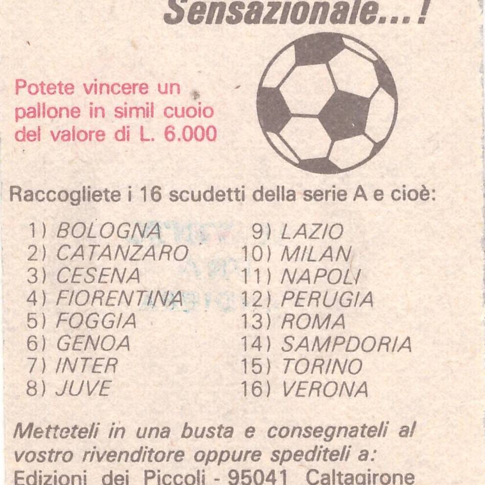 Edizioni dei Piccoli Calcio Scudetti 1976-77 bustina retro