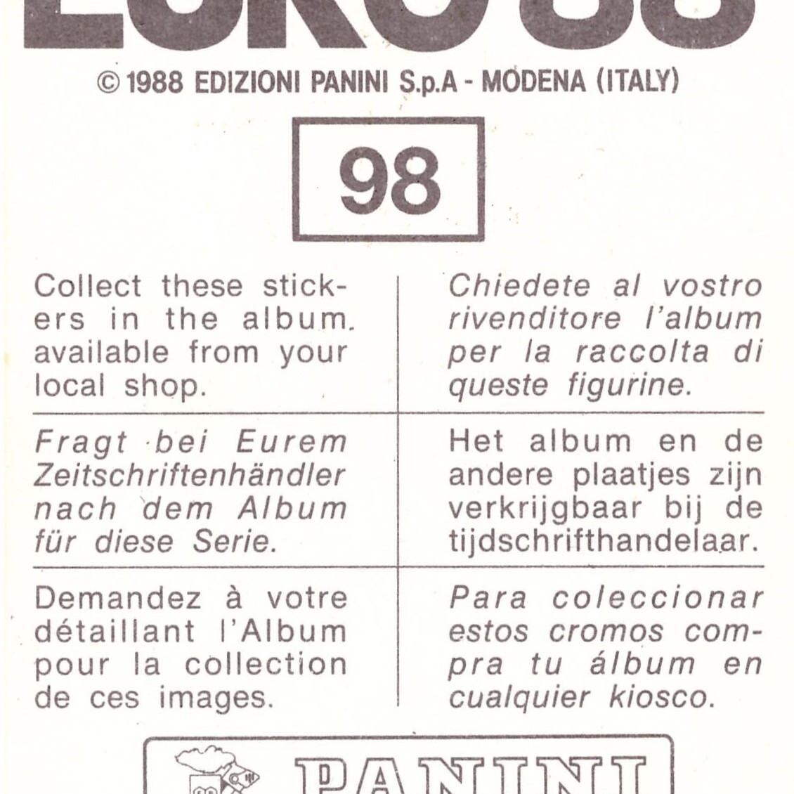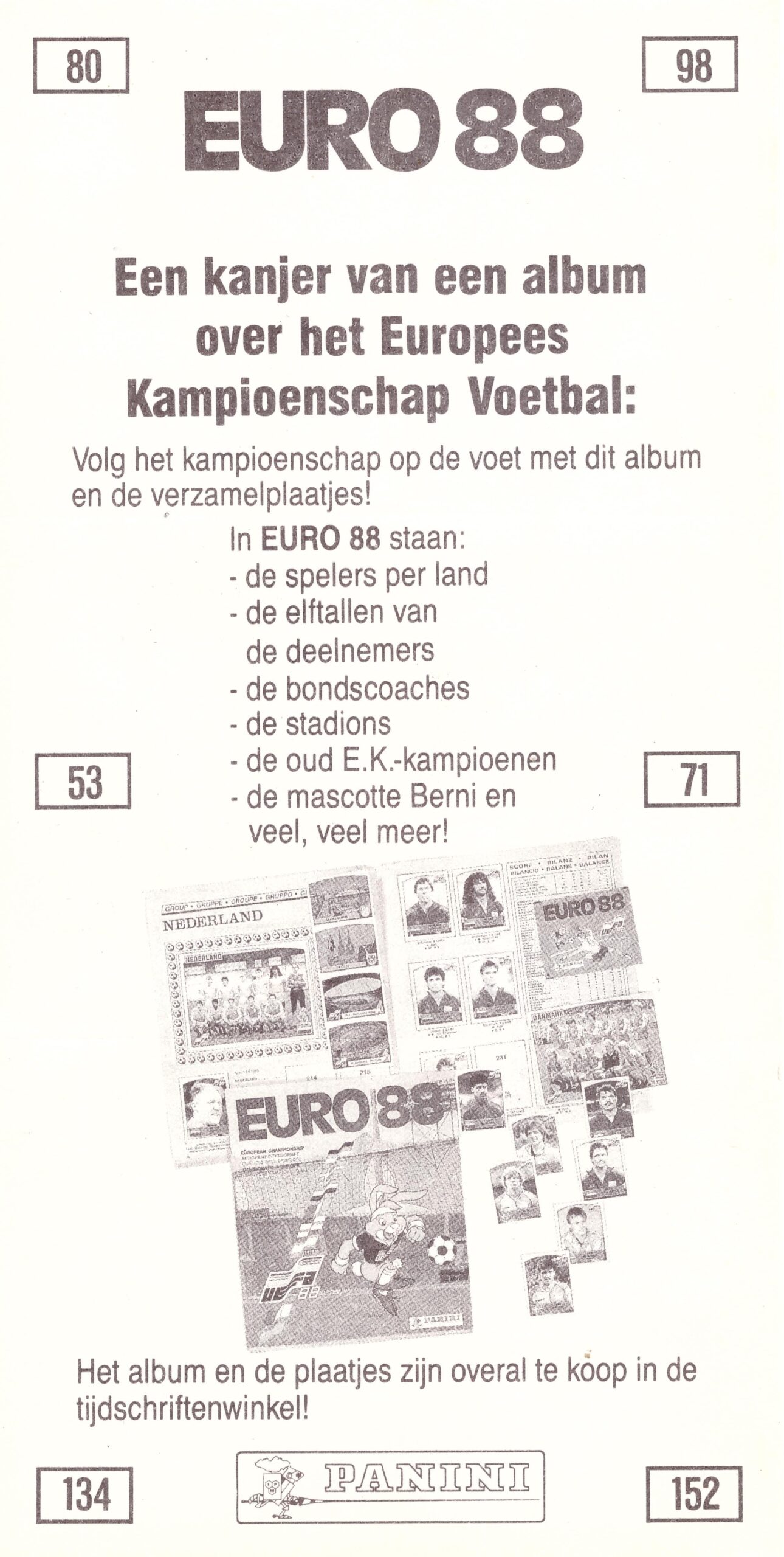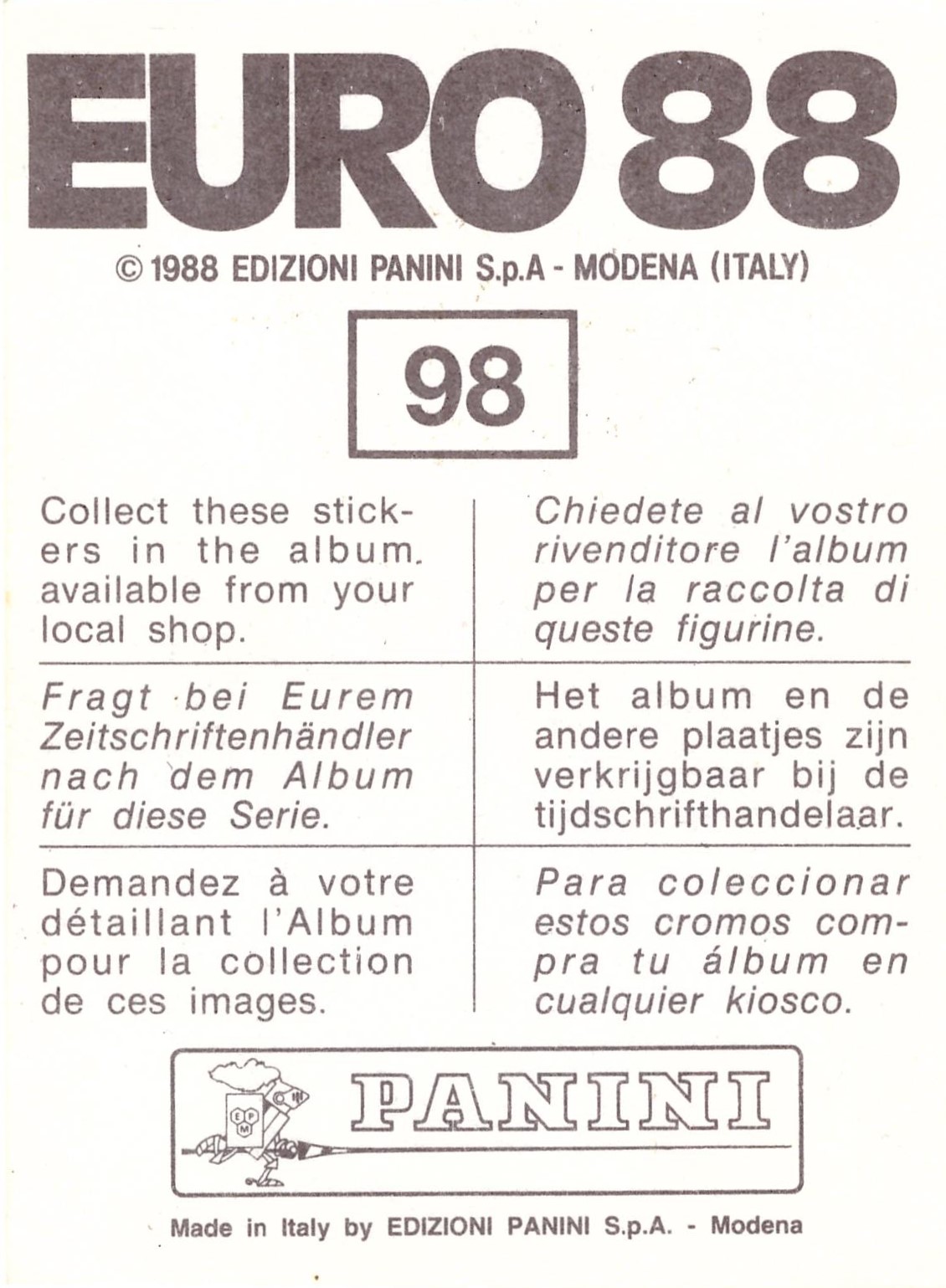 Panini Euro Germania 88 1987-88 foglio retro olandese
