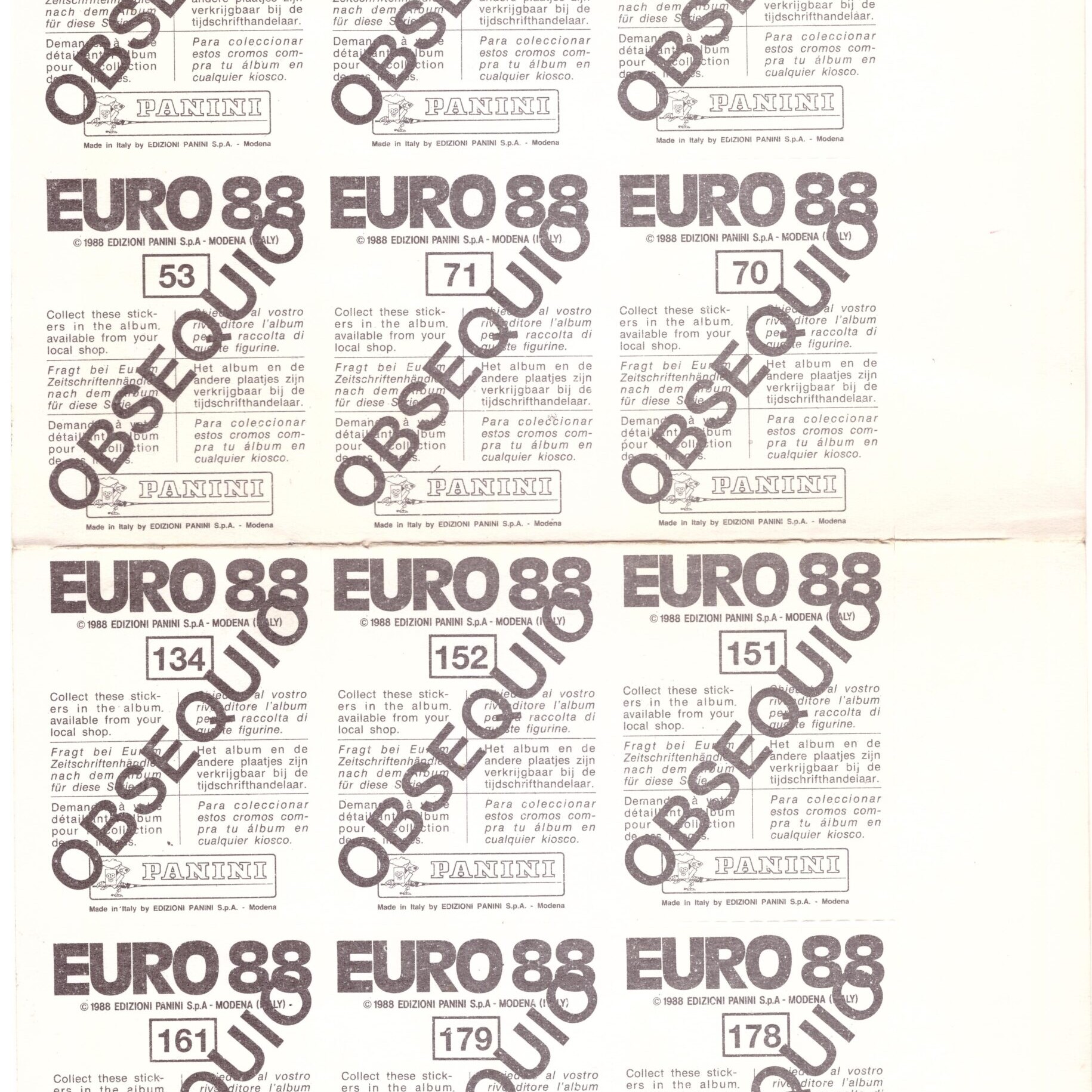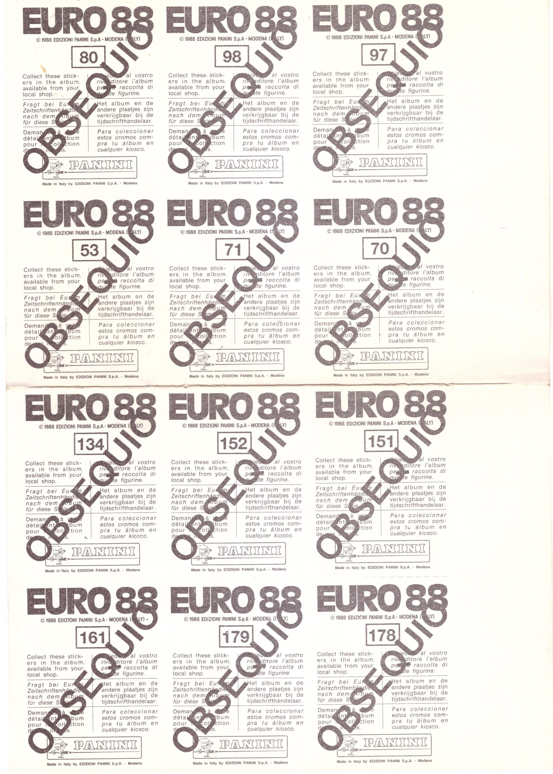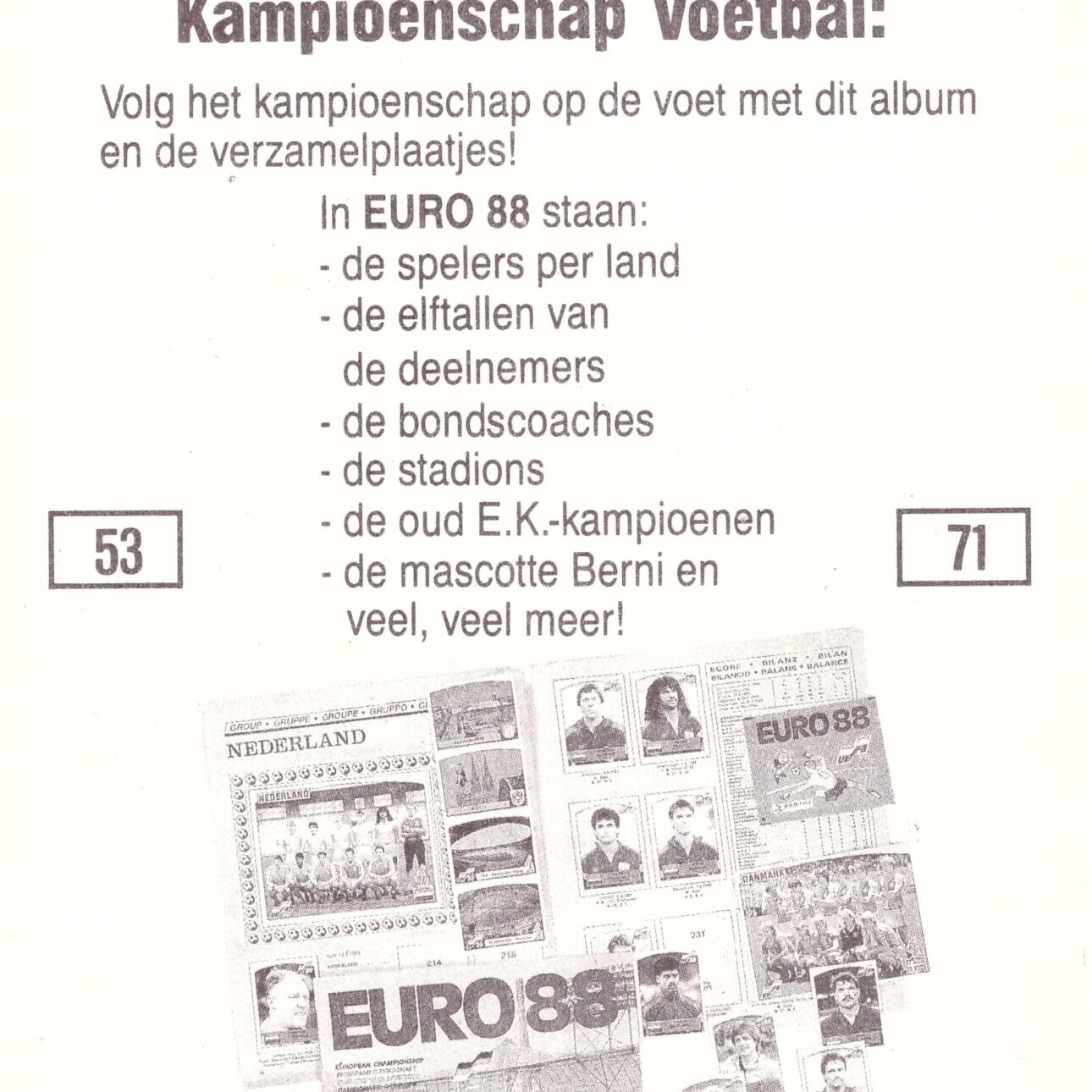 Panini Euro Germania 88 1987-88 foglio retro olandese