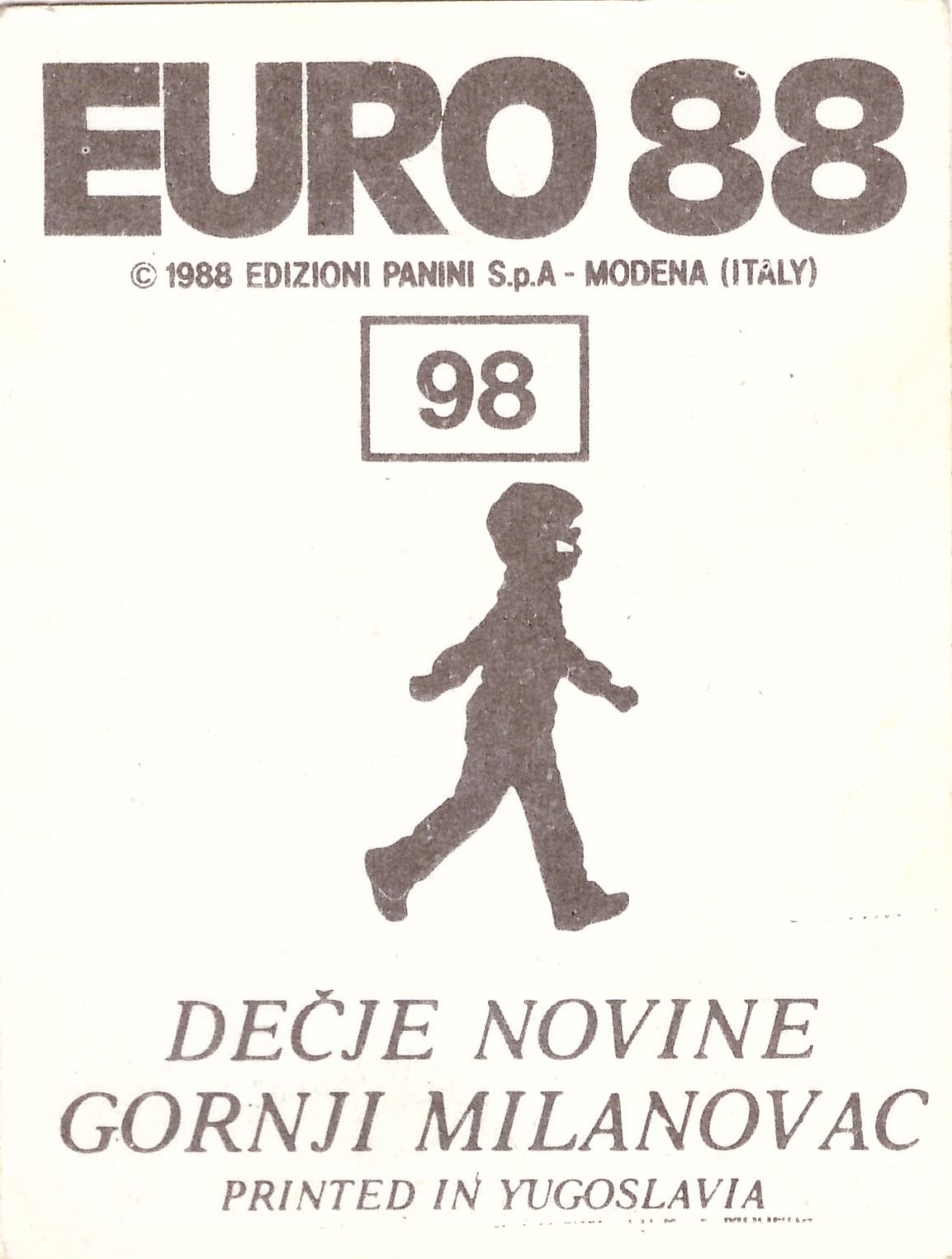 Panini Euro Germania 88 1987-88 versione Decje Novine retro