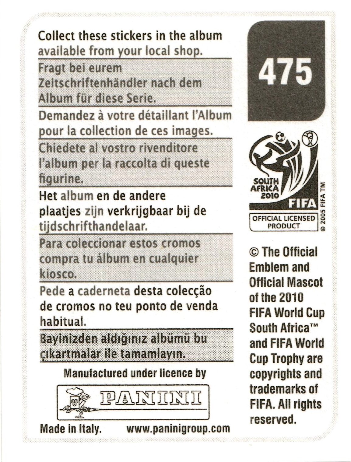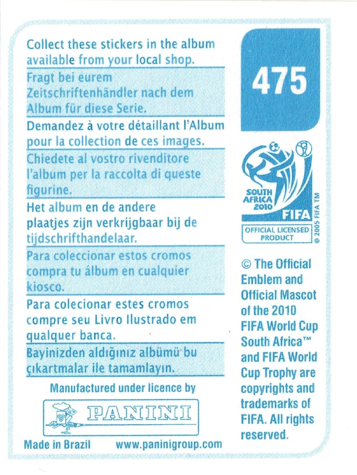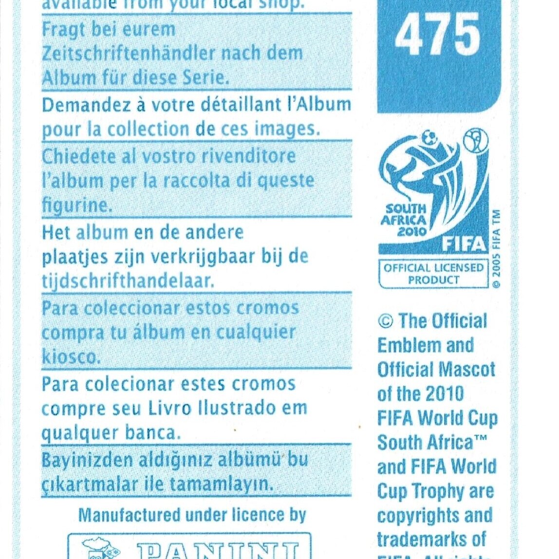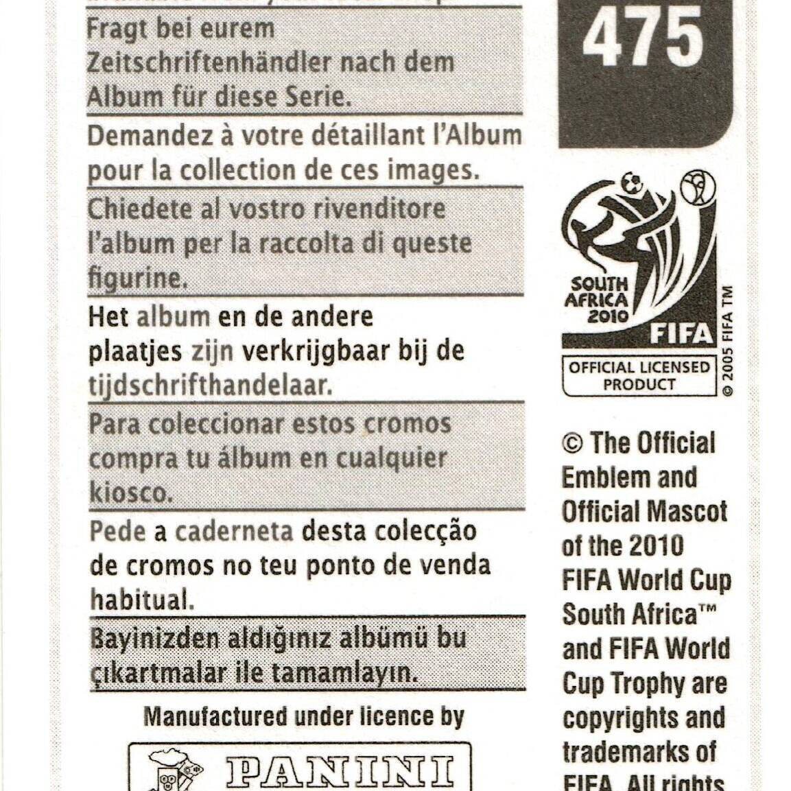 Panini World Cup South Africa 2010 2009-10 Versione Sudamerica retro