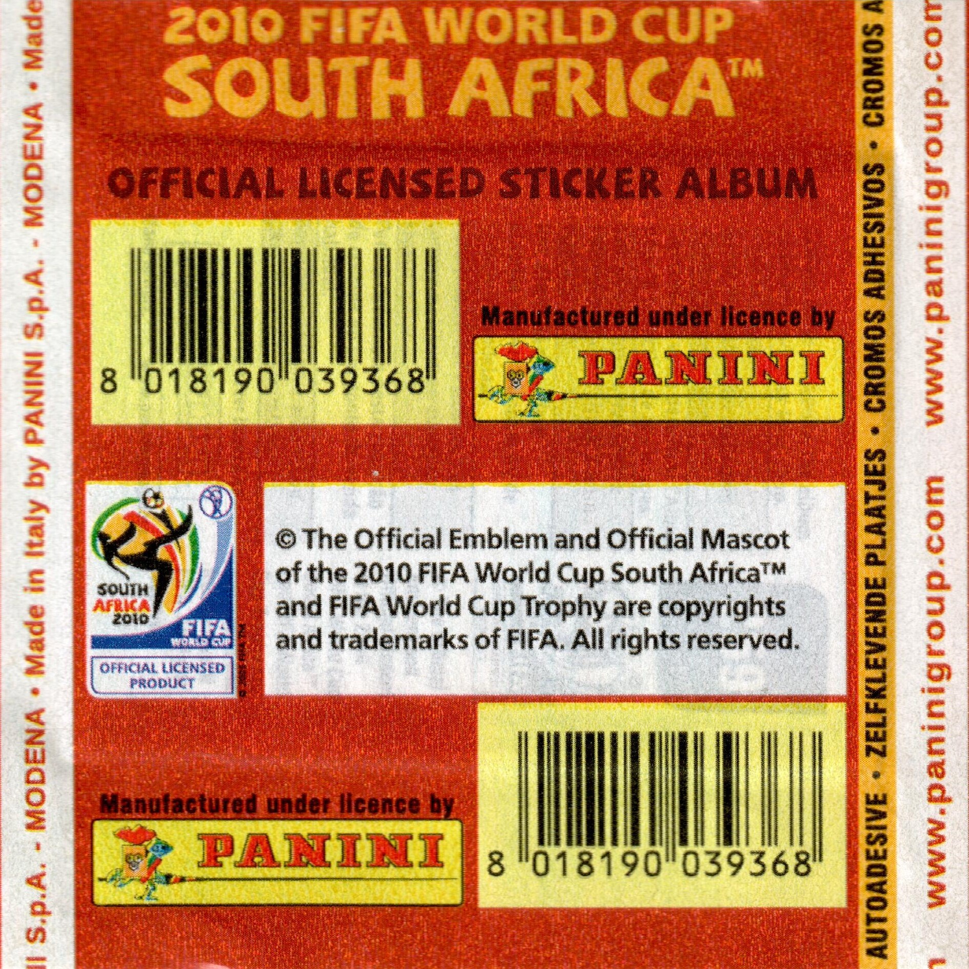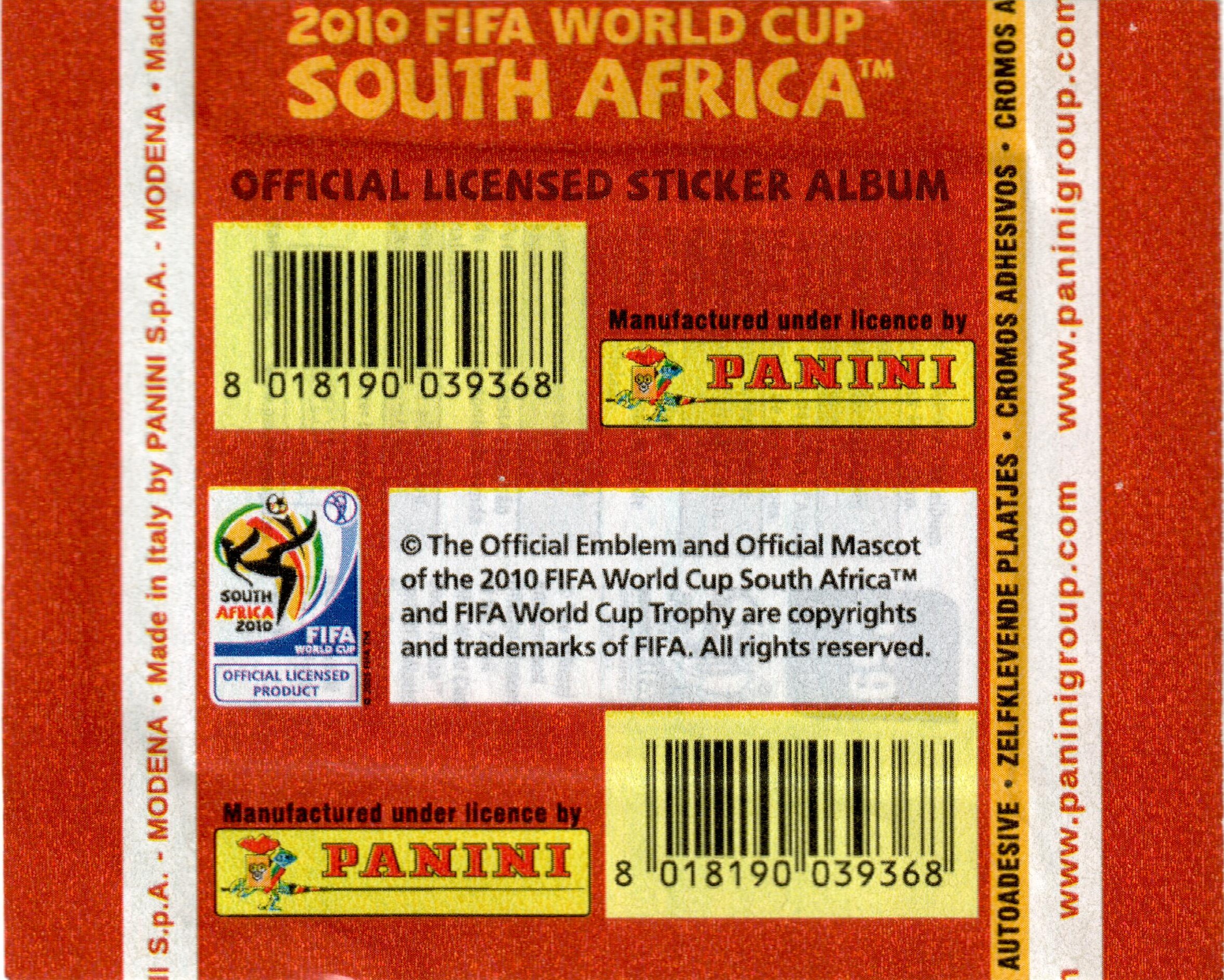 Panini World Cup South Africa 2010 2009-10 bustina