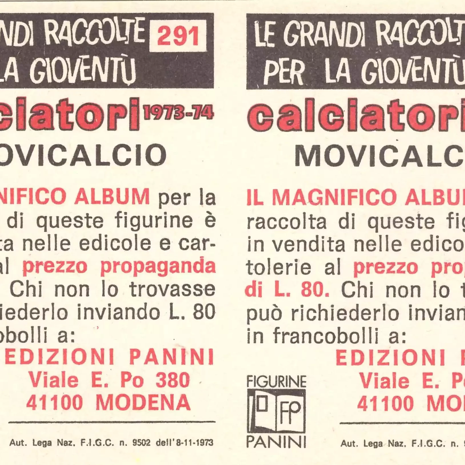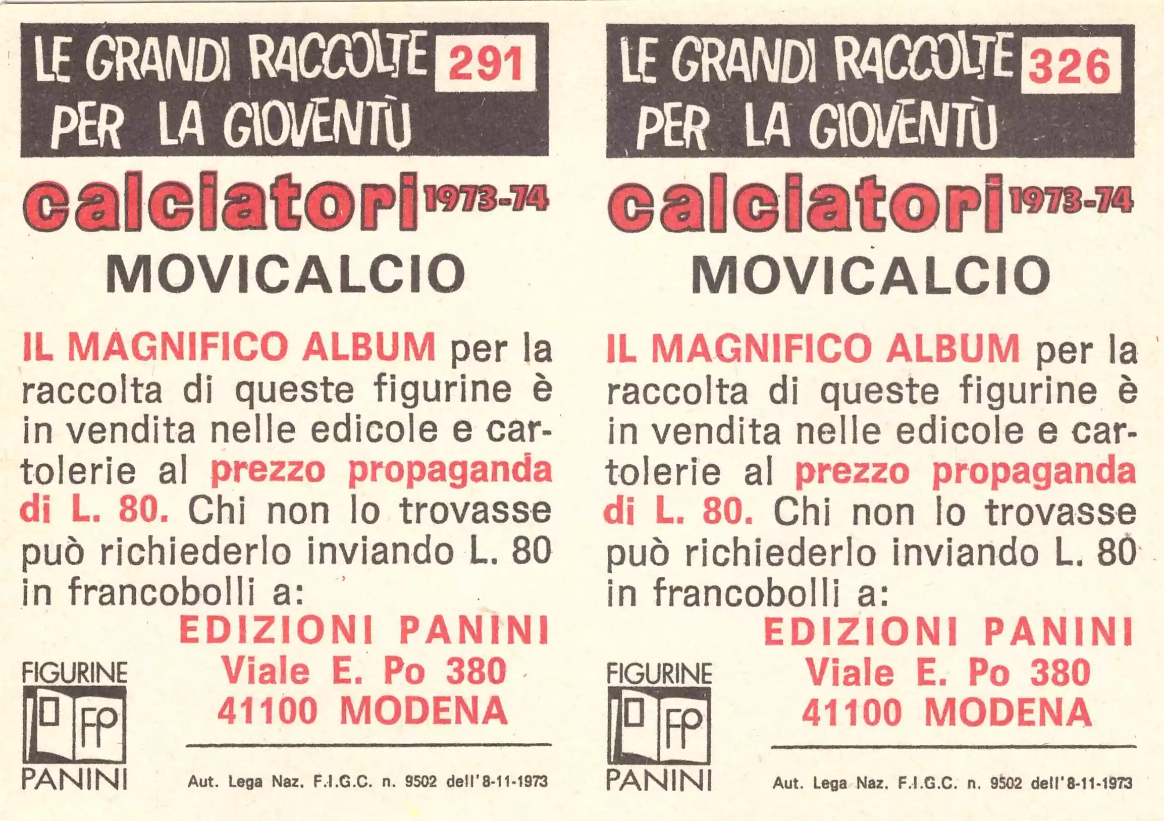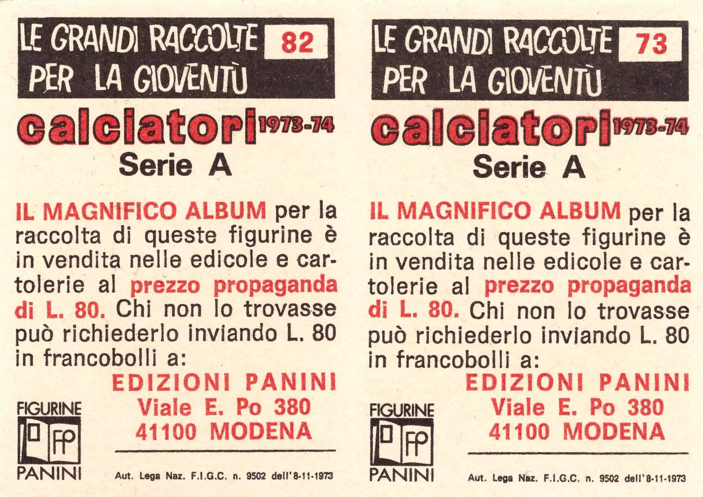Panini Super Calciatori 1973-74 Brignani e Danova Cesena