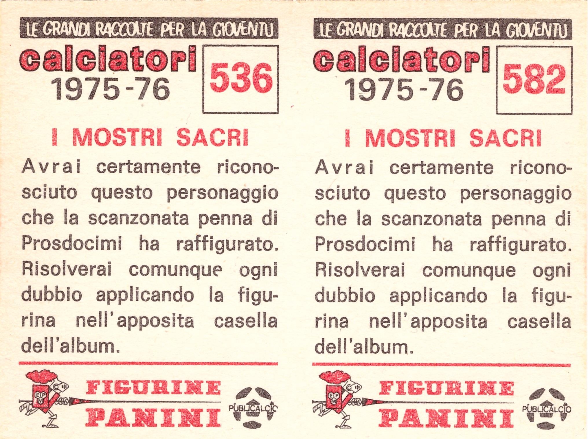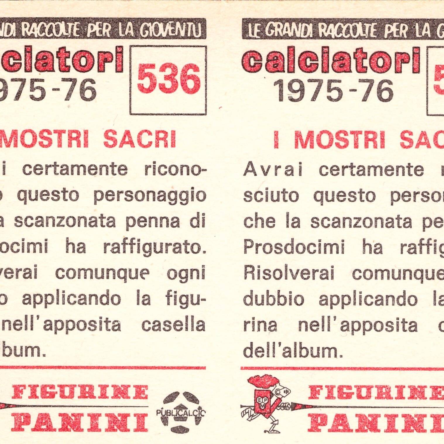 Panini Calciatori 1975-76 SuperCalciatori Mostri Sacri retro
