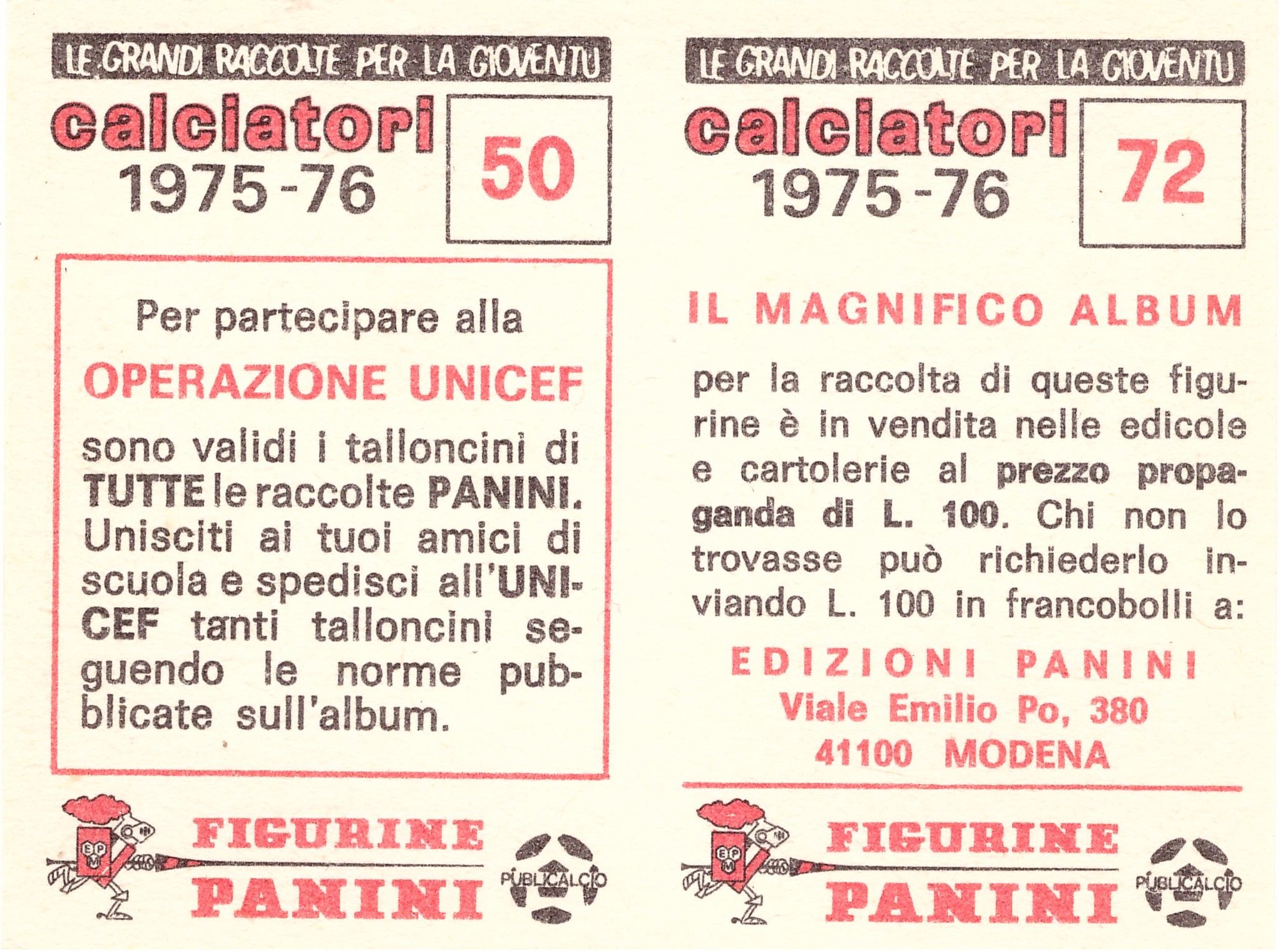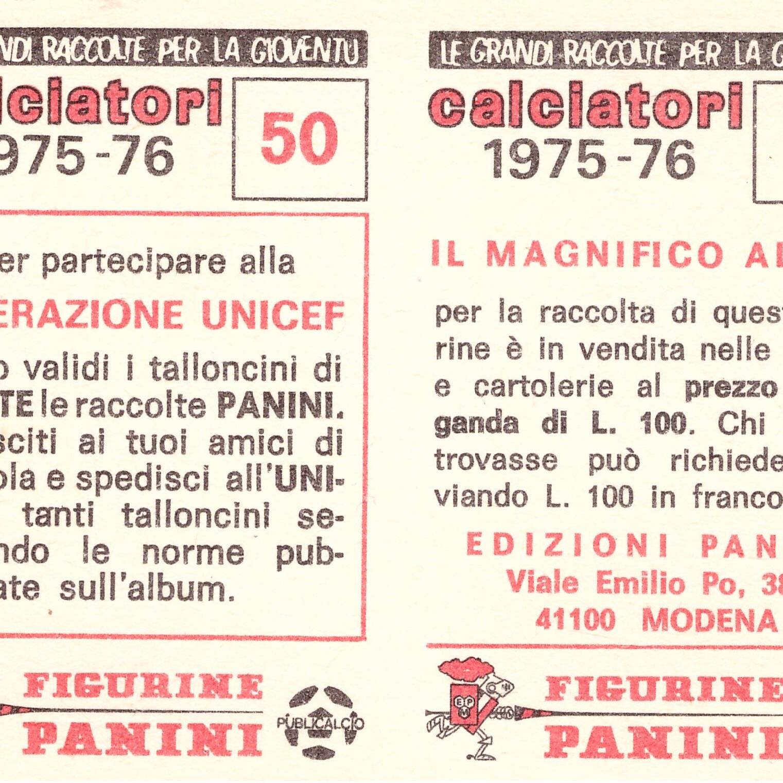 Panini Calciatori 1975-76 SuperCalciatori bustina retro