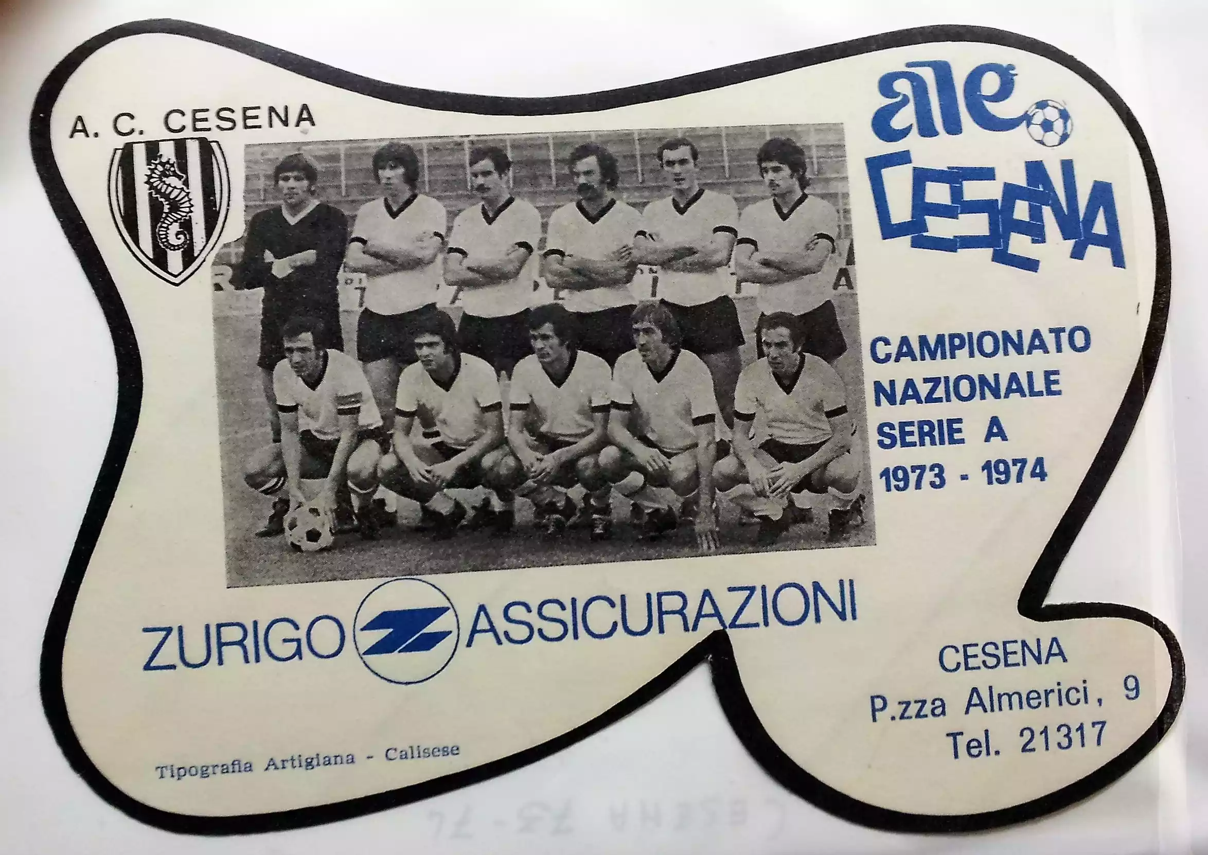 Tipografia Artigiana Zurigo Assicurazioni adesivo formazione amichevole Cesena-Vicenza 1973-74