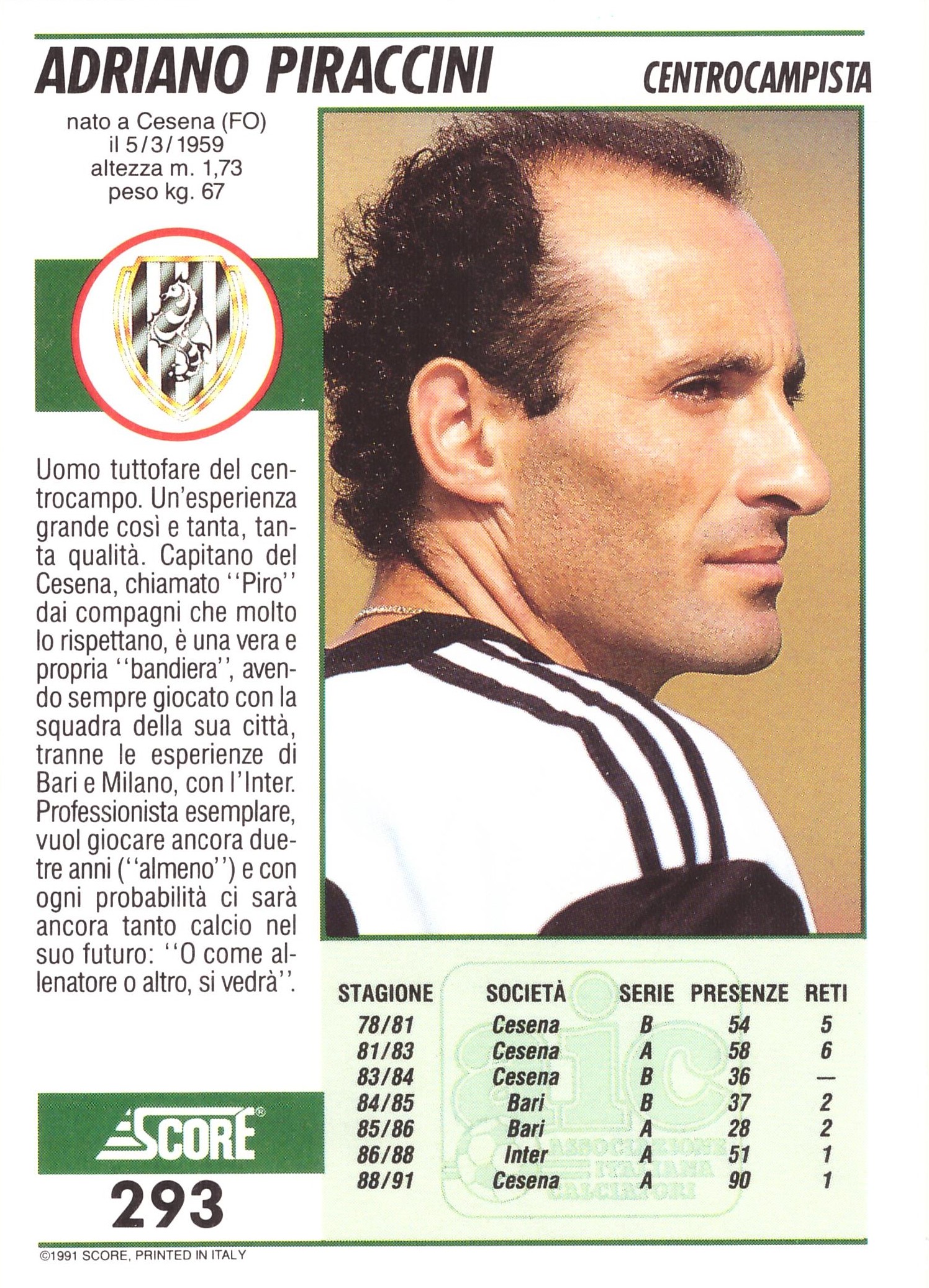 Score International Le Figurone Score 1991-92 Piraccini