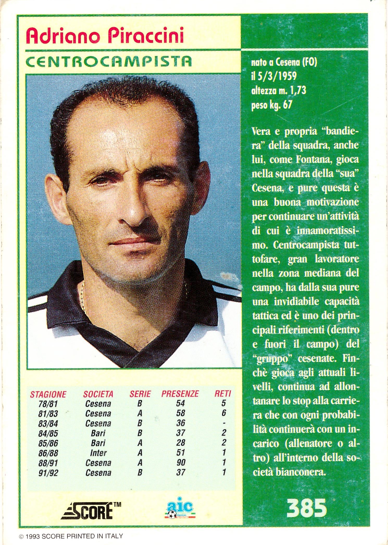 Score International Le Figurone Score 1992-93 Piraccini retro