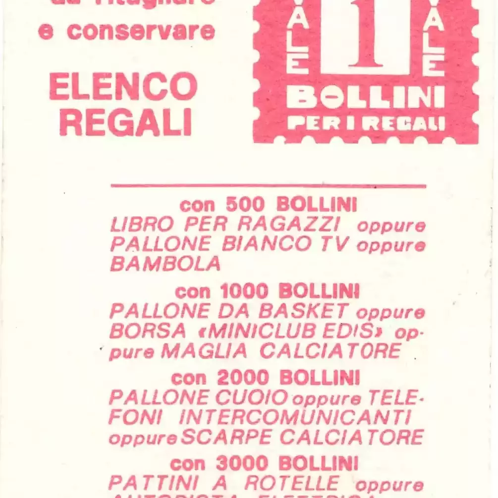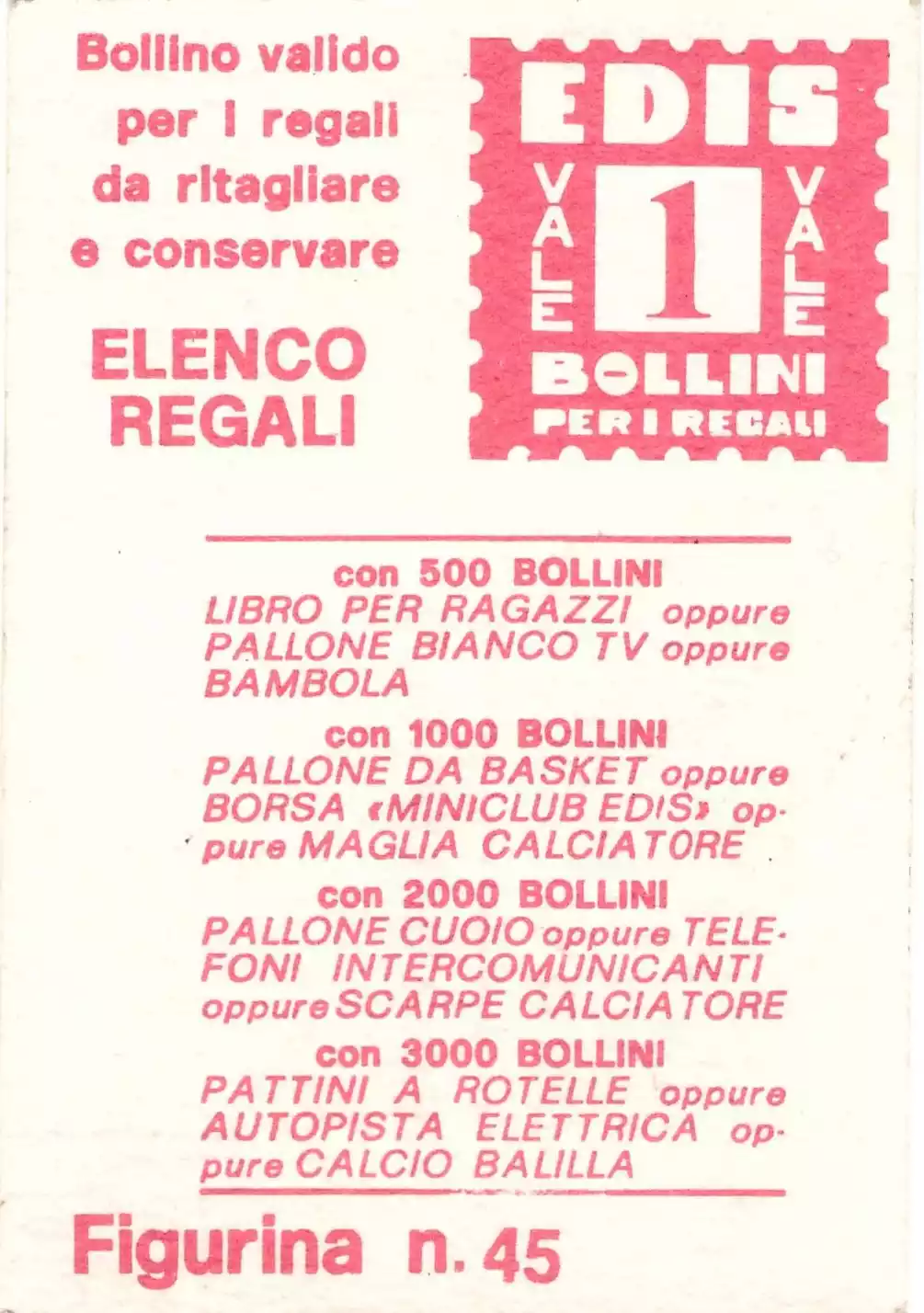 Edis Calciatori 1973-74 figurina retro 1 bollino