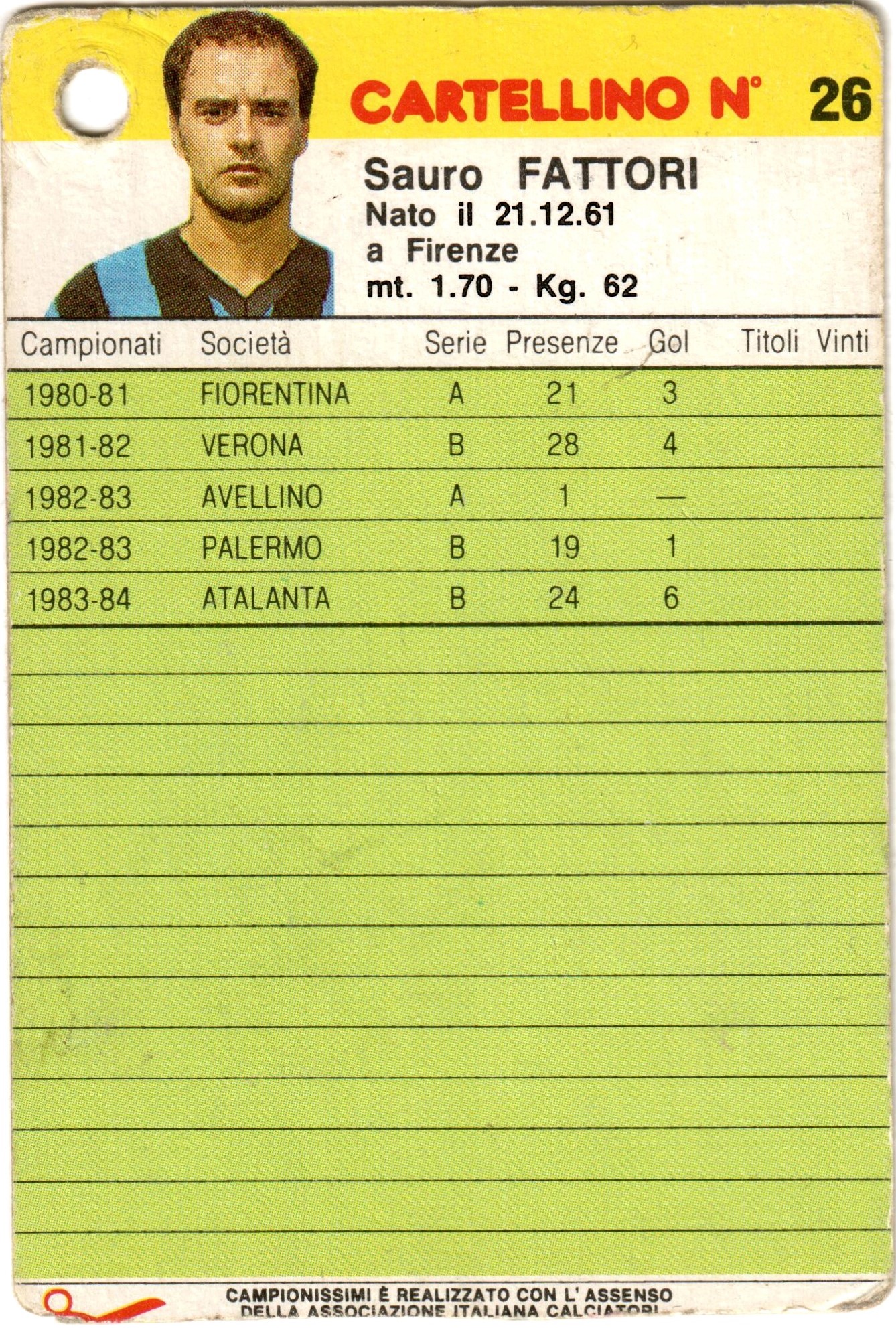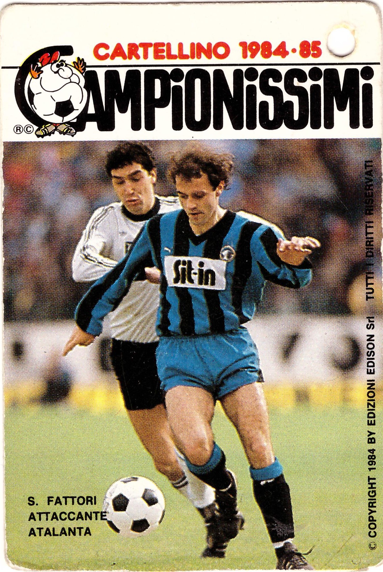 Edison Campionissimi Cartellini 1984-85 Cuttone in azione in Cesena-Atalanta 1983-84