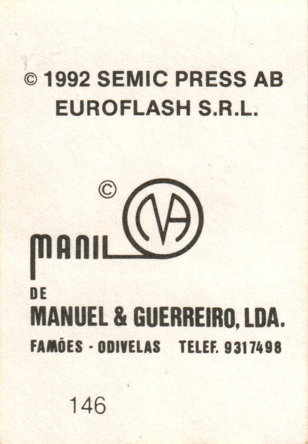 Manil Campeonato Europeu de Futebol Sweden 92 1991-92 bustina retro