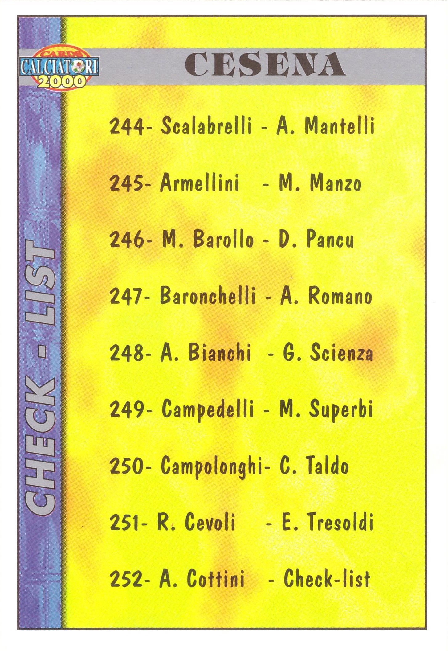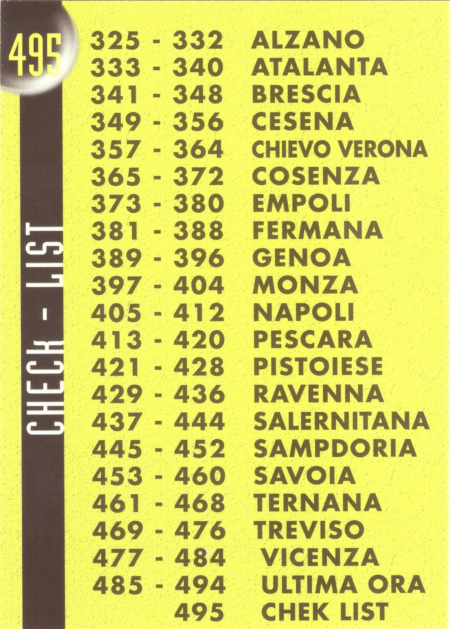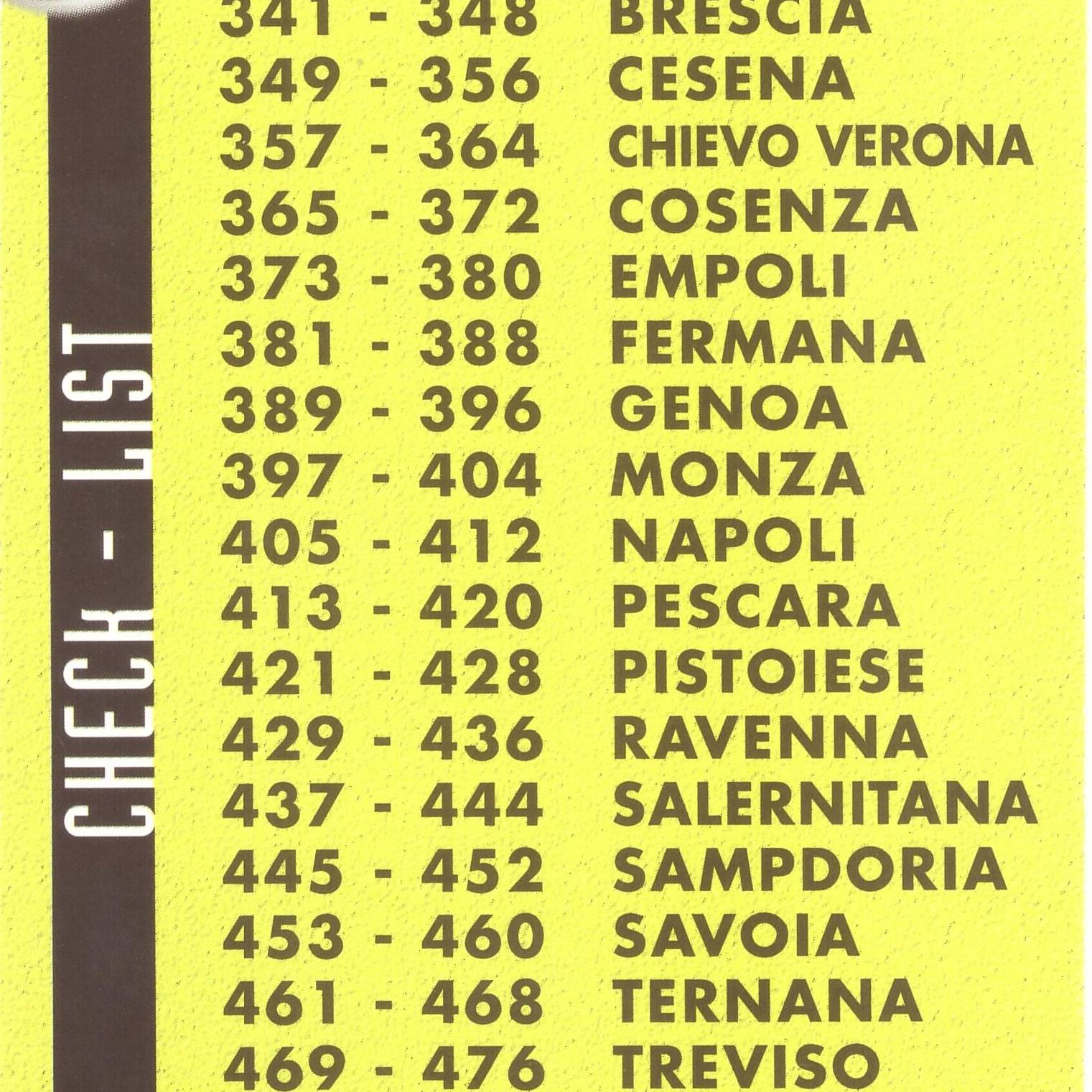 Mundicromo Sport Calciatori Etichetta Nera 1999-00 Check List