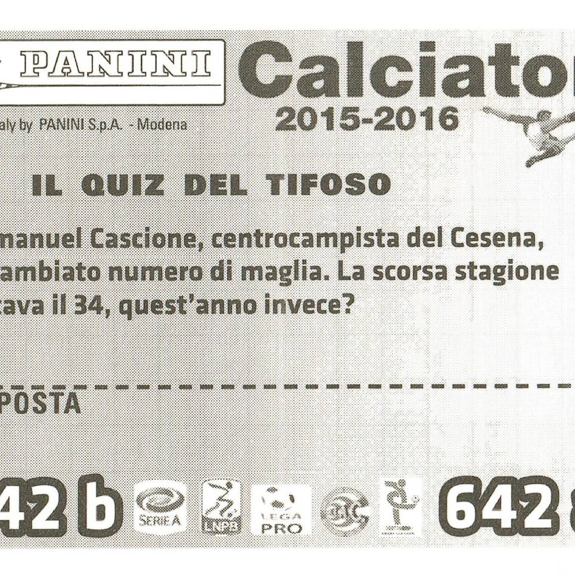 Panini Calciatori 2015-16 Lucchini-Caldara retro