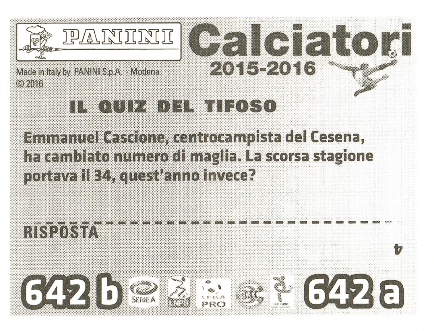Panini Calciatori 2016-17 Balzano-Capelli-Ligi retro