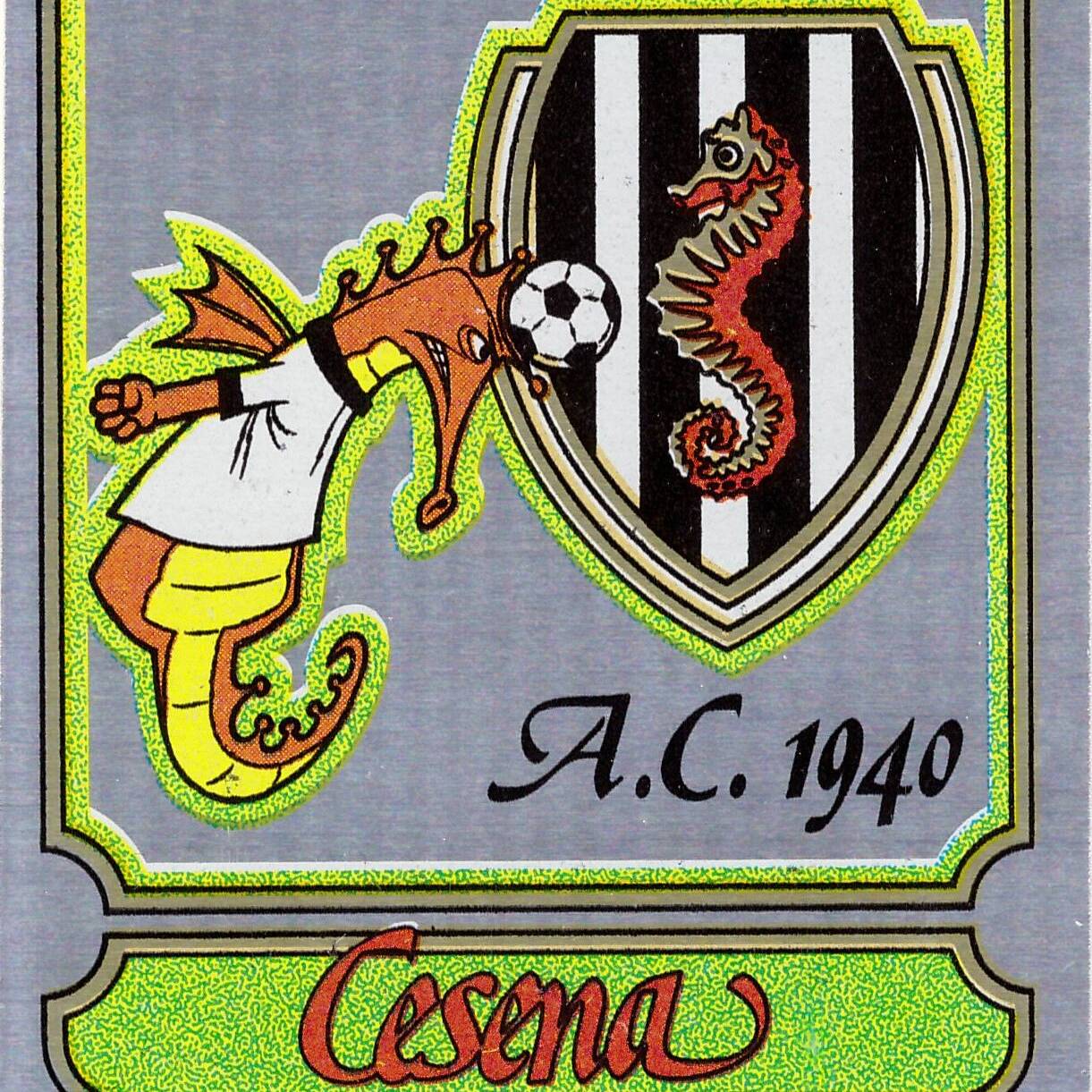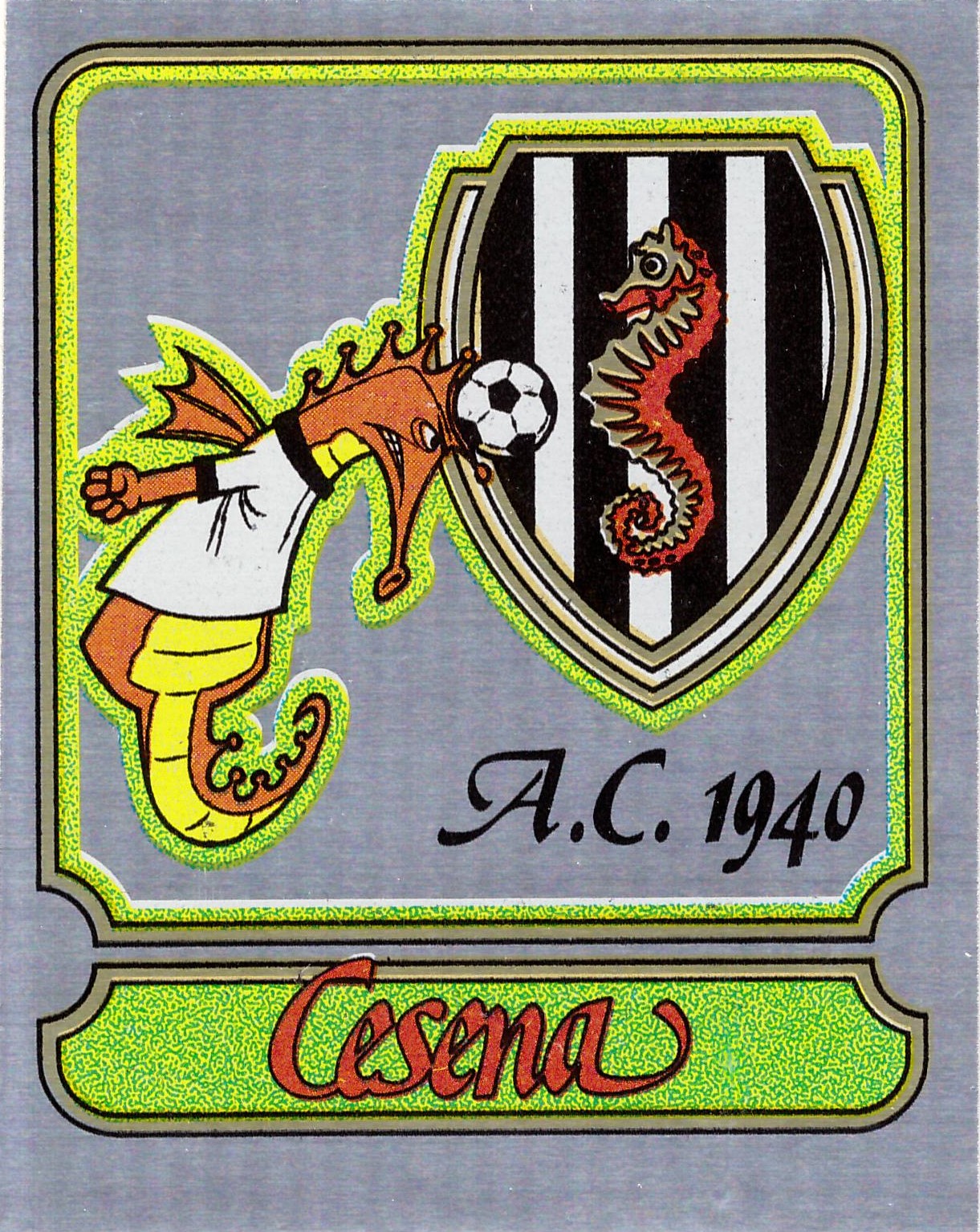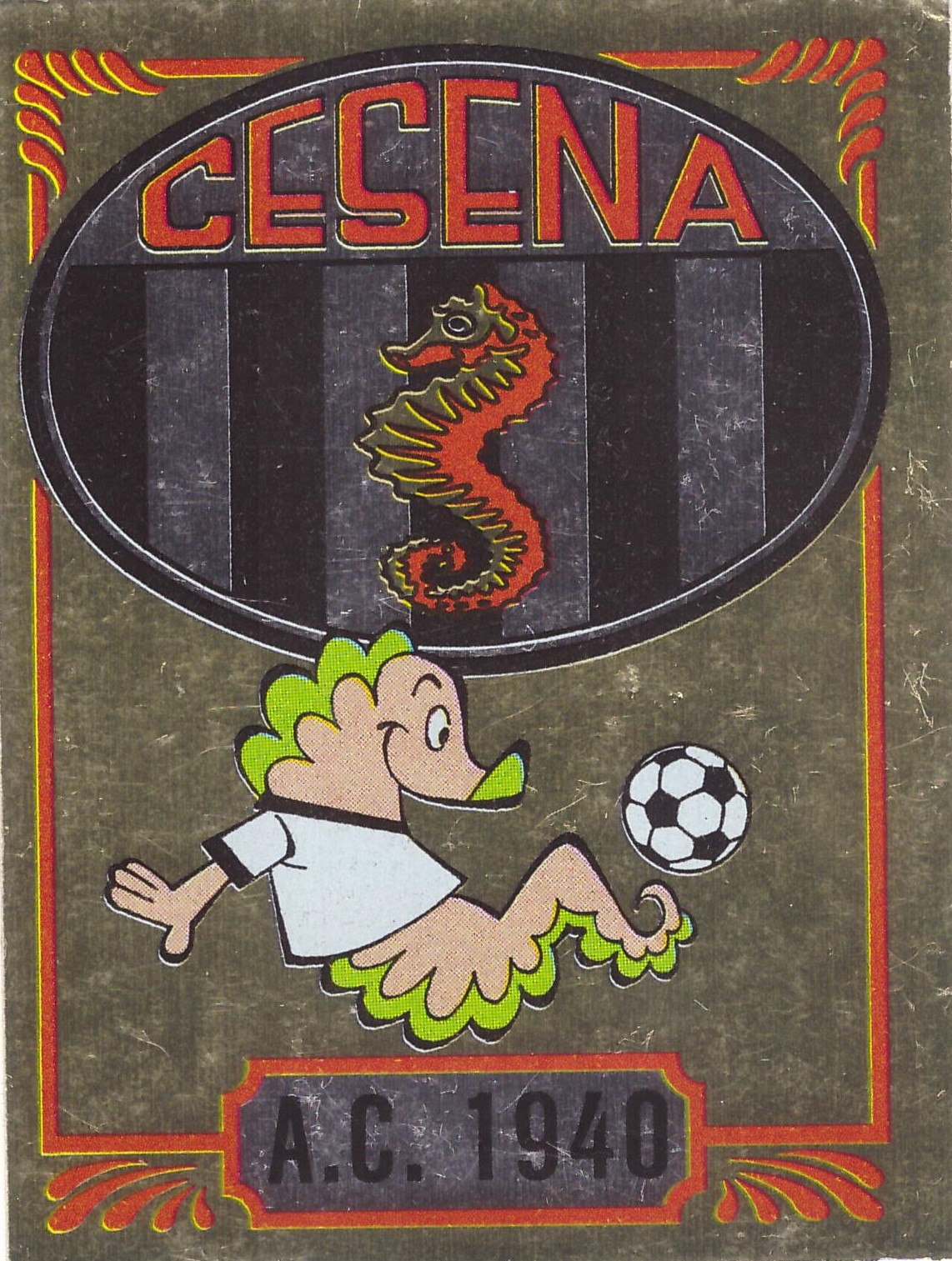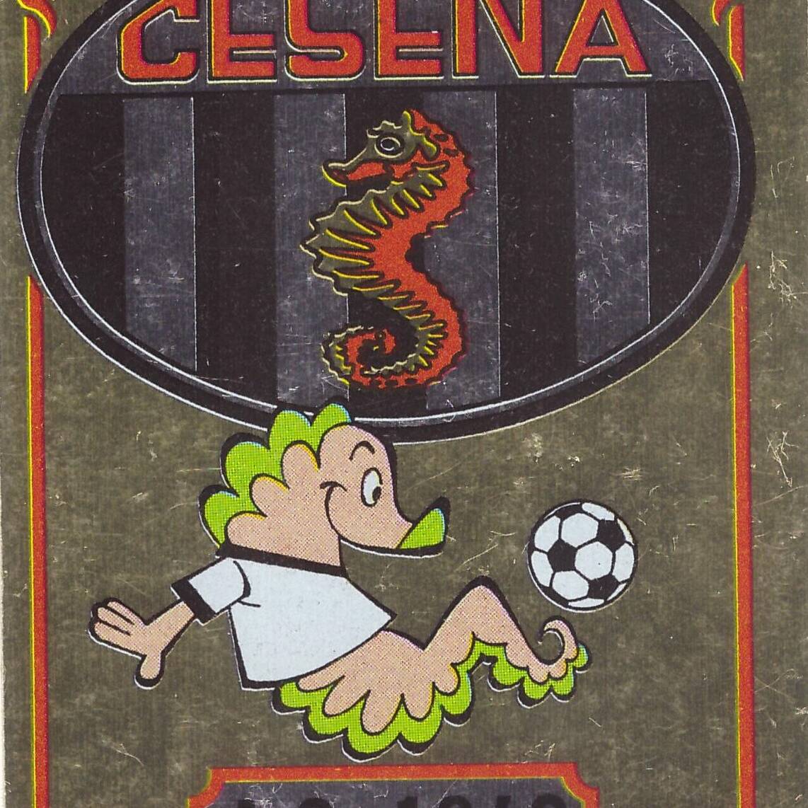 Panini Calciatori 1973-74 cartolina adesiva gigante fuori raccolta Scudetto e Squadra Cesena in amichevole Cesena-Vicenza 1973-74