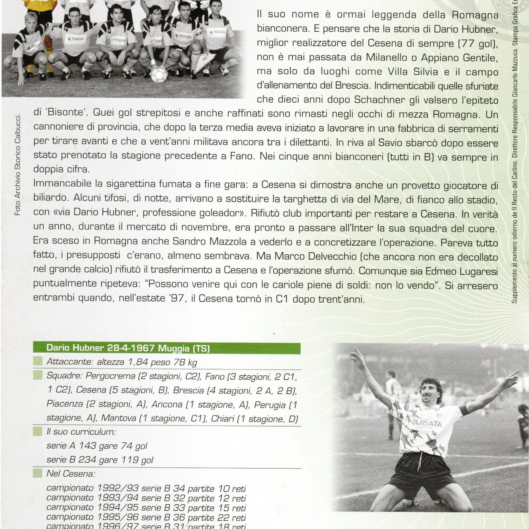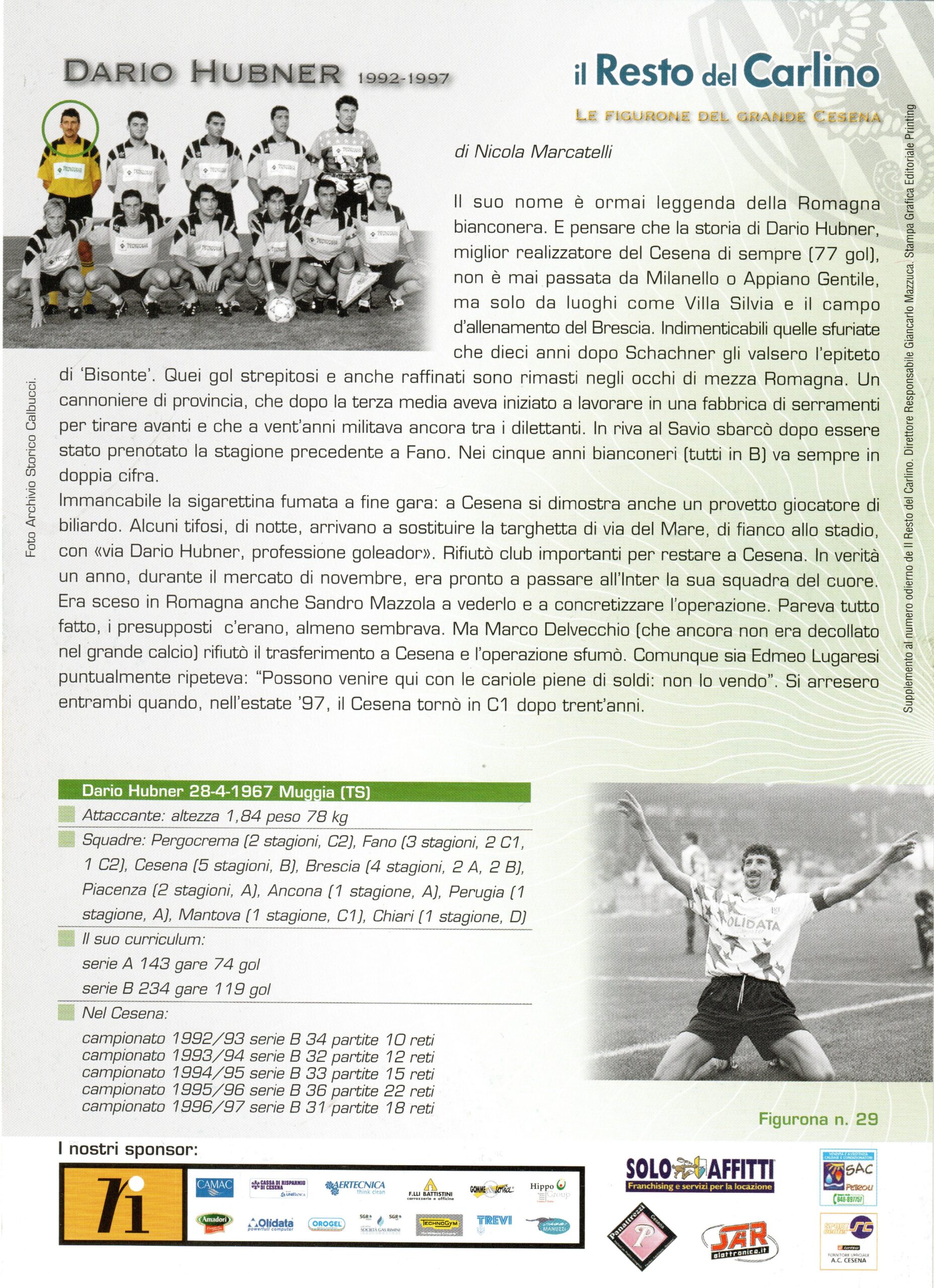 Il Resto del Carlino Le Figurone del Grande Cesena 2005-06 nr.29 Hubner retro