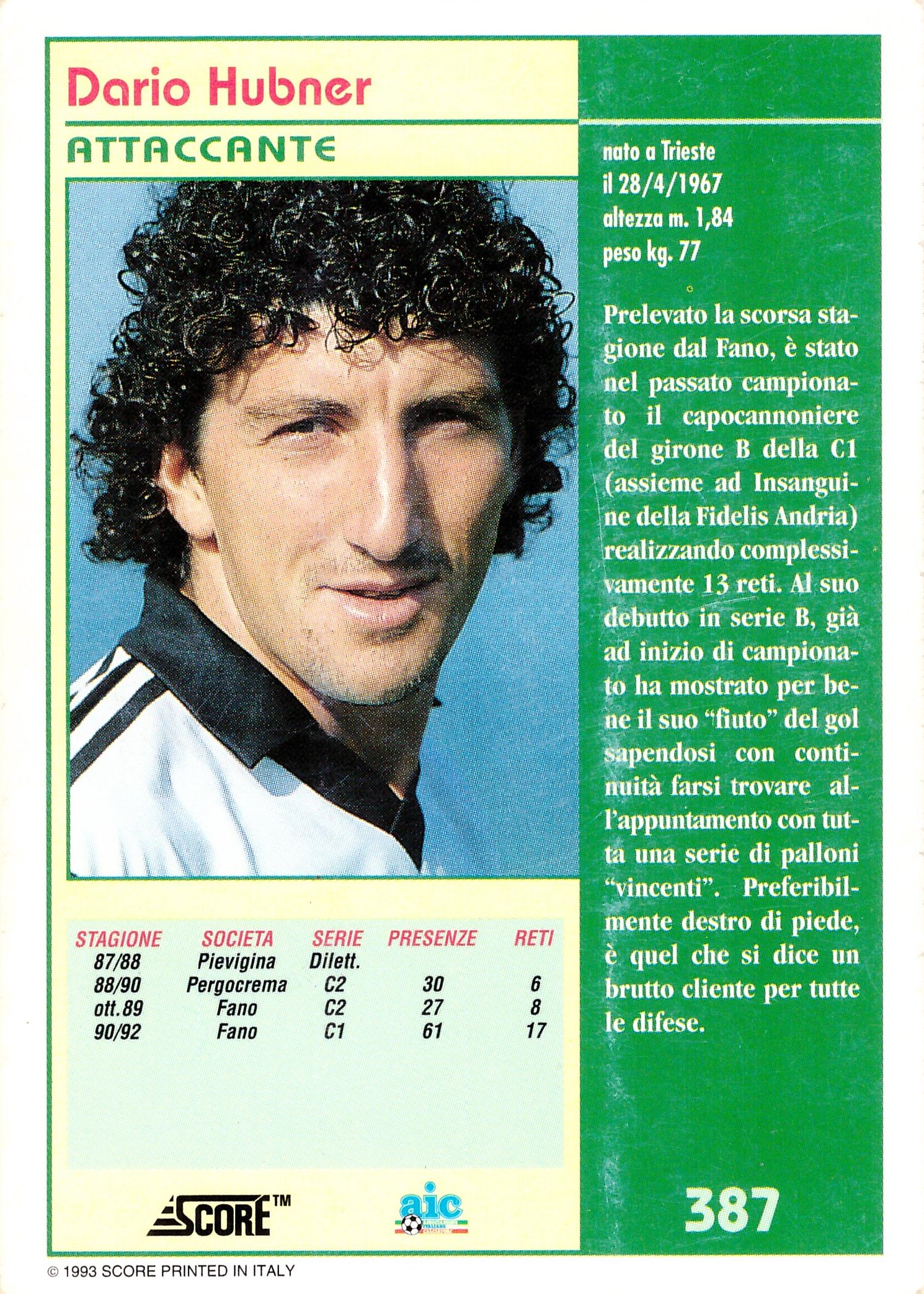 Score International Le Figurone Score 1992-93 Hubner