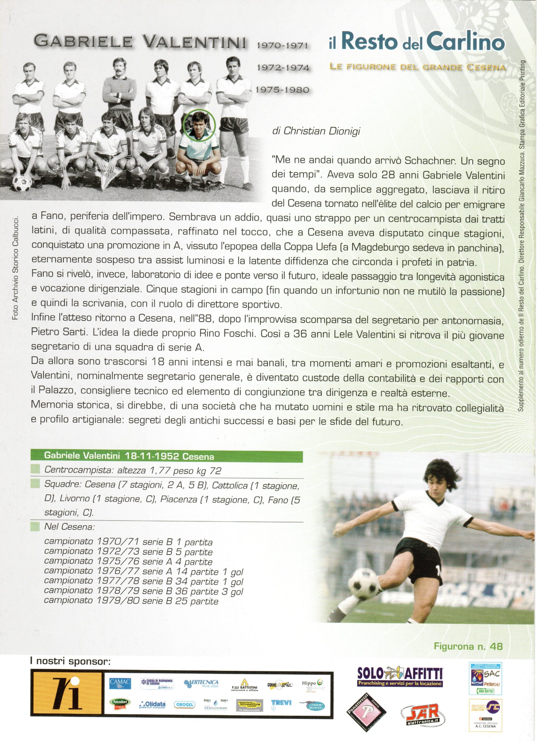 Il Resto del Carlino Le Figurone del Grande Cesena 2005-06 nr.48 Valentini