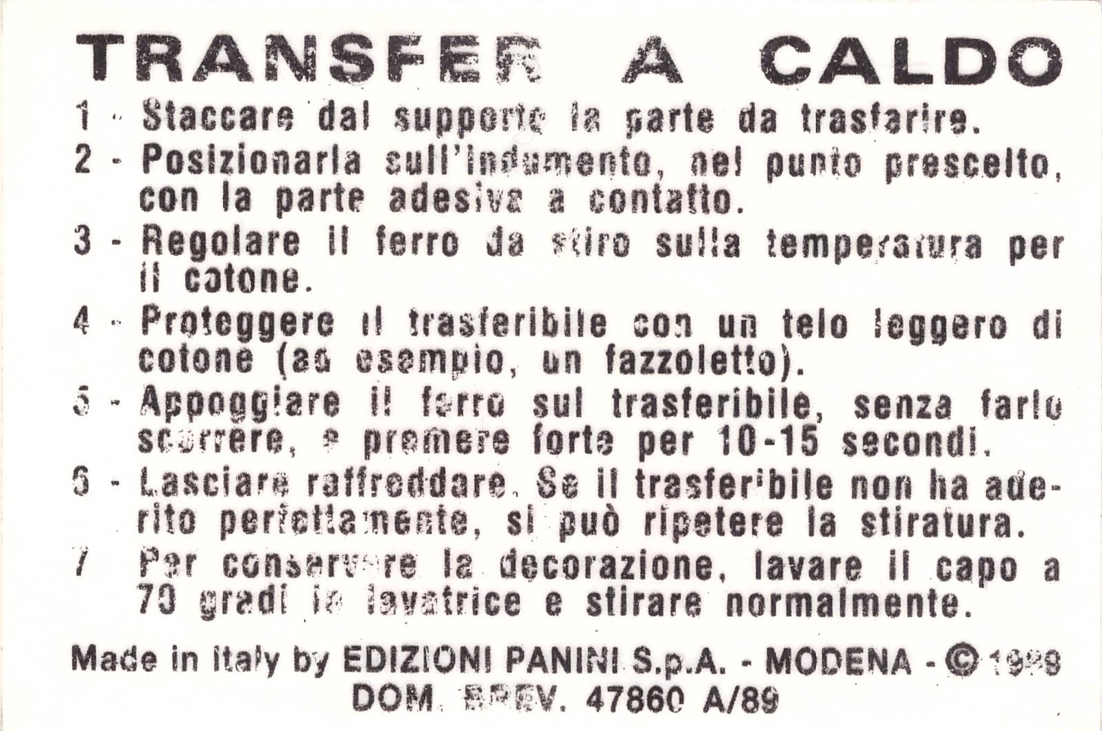 Panini Stickers Alè O-oh! 1989-90 Transfer retro