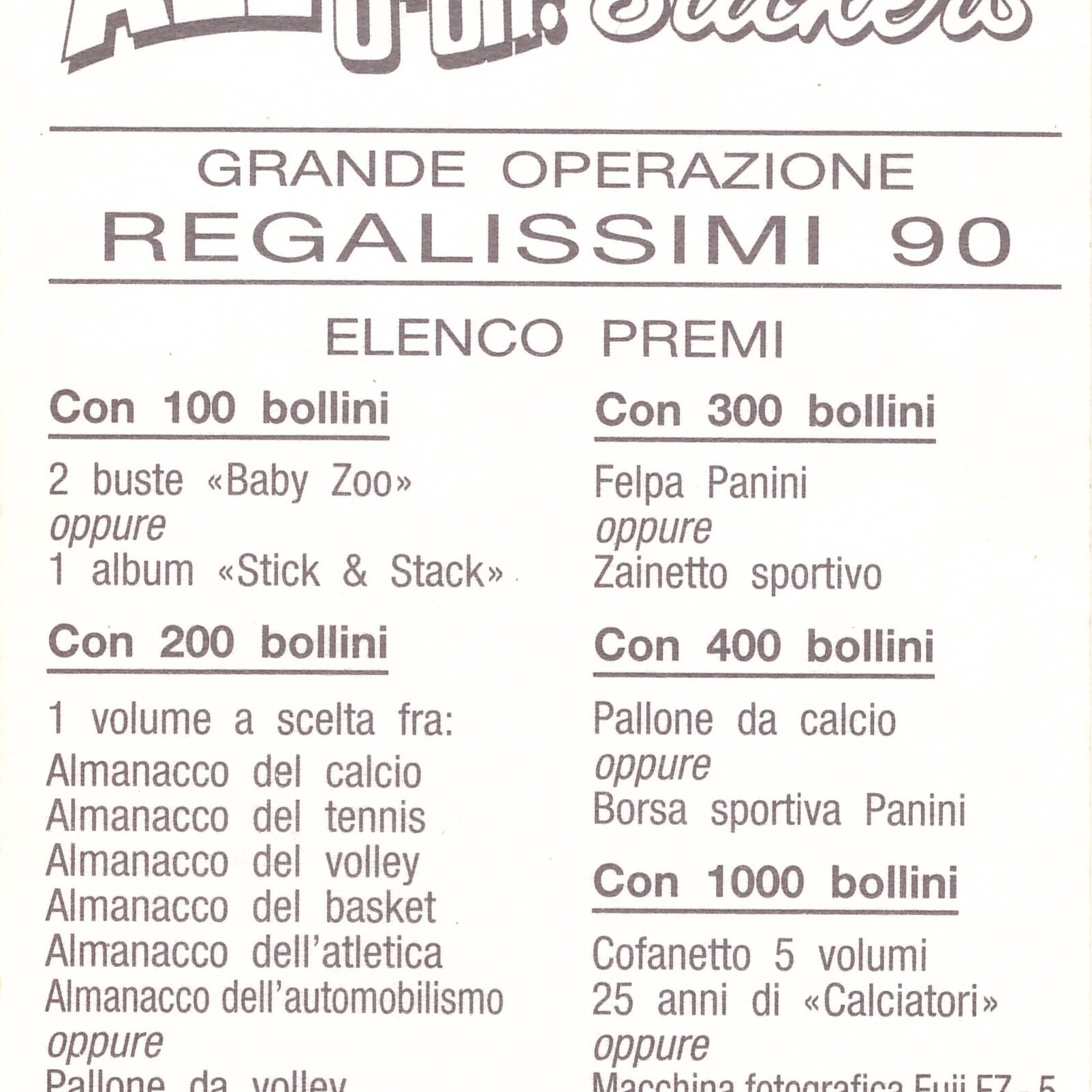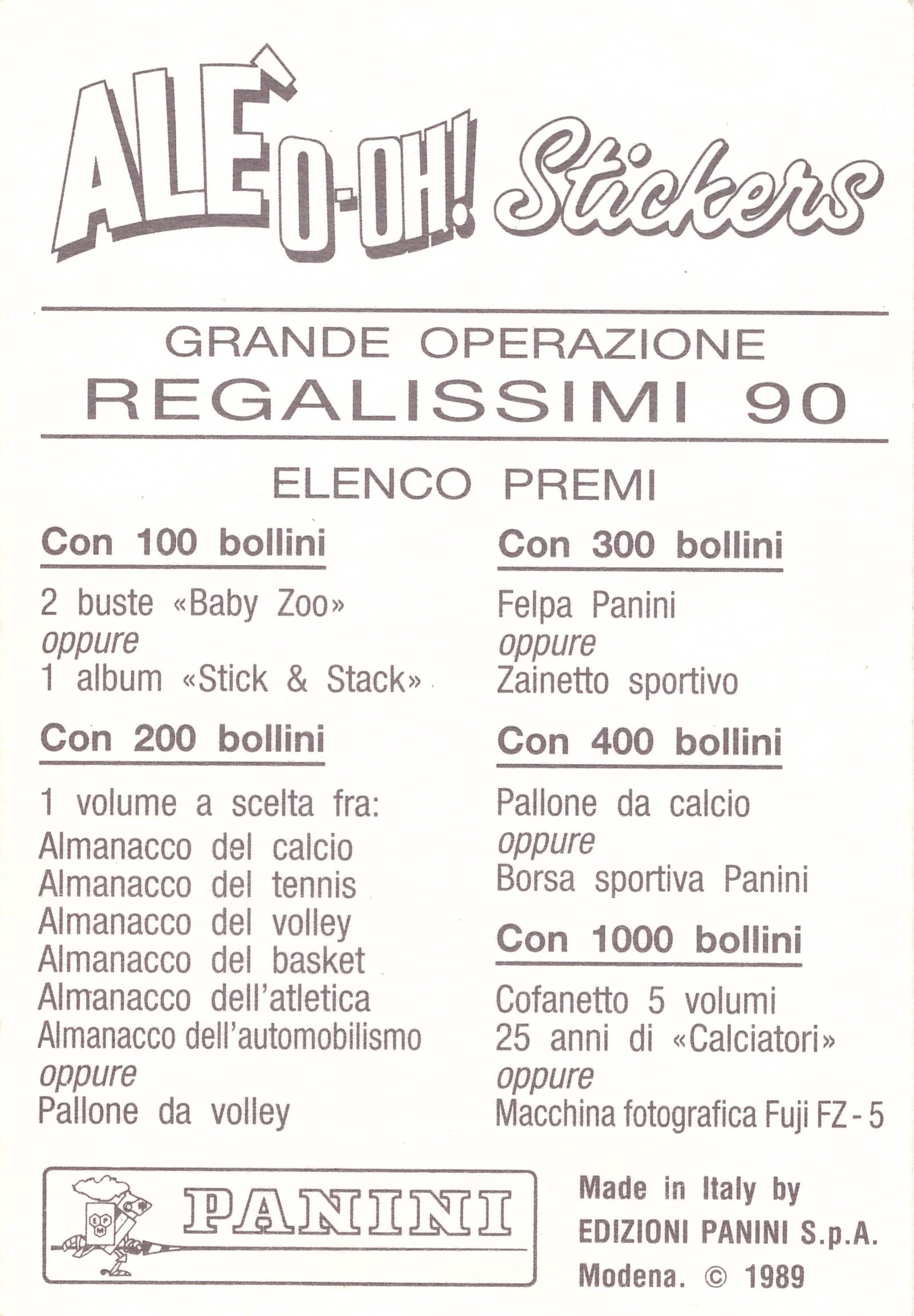 Panini Stickers Alè O-oh! 1989-90 retro premi