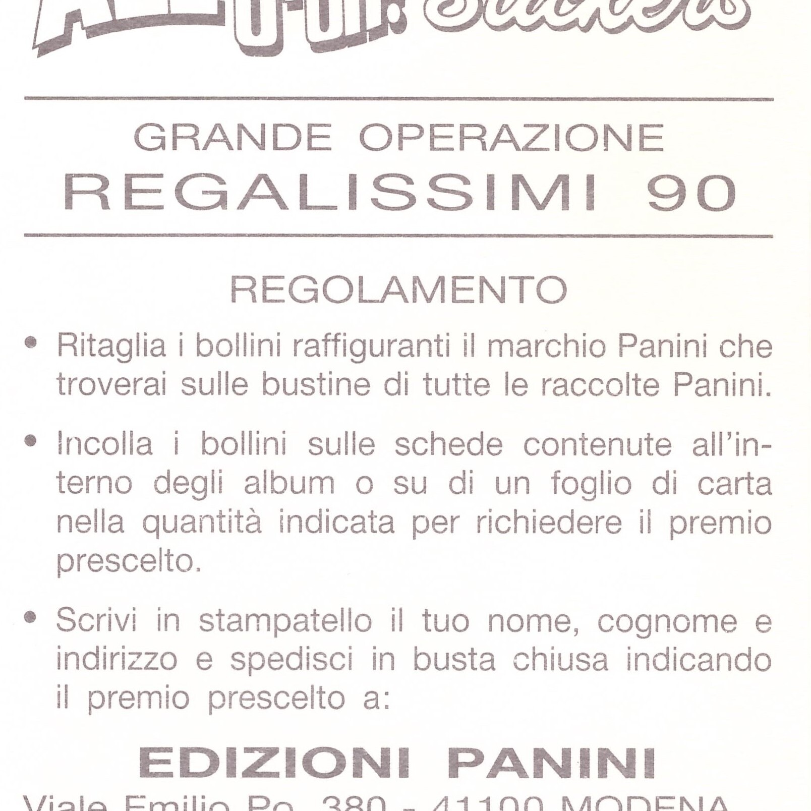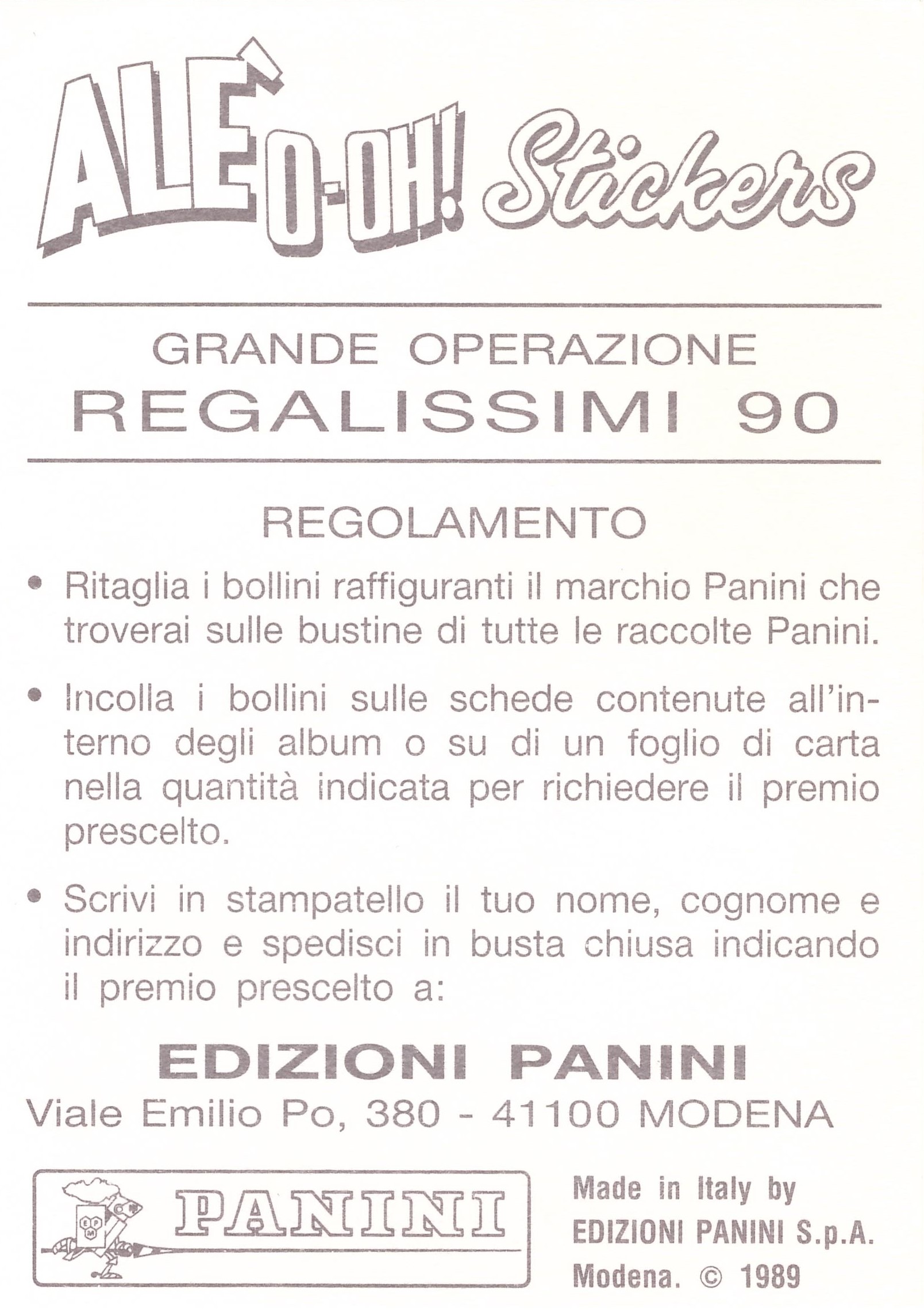 Panini Stickers Alè O-oh! 1989-90 retro regolamento