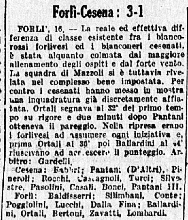 L'articolo de La Gazzetta dello Sport CESENA-AMATORI BOLOGNA 1940-41 (amichevole) CESENA-FAENZA 1940-41 (amichevole)