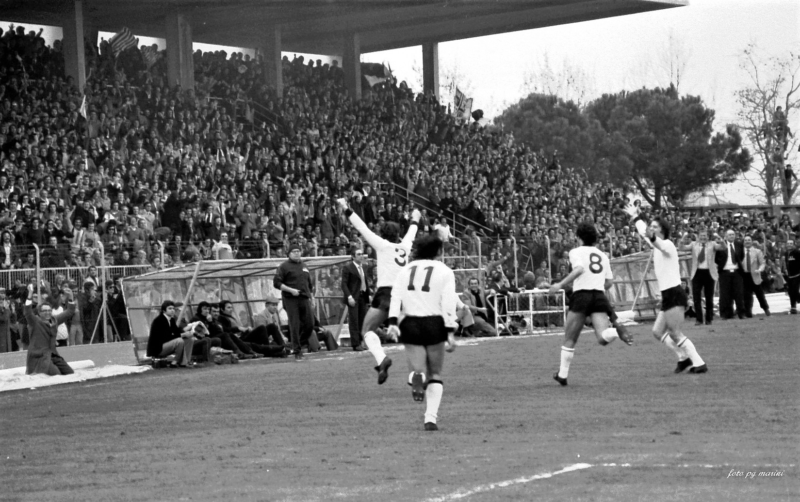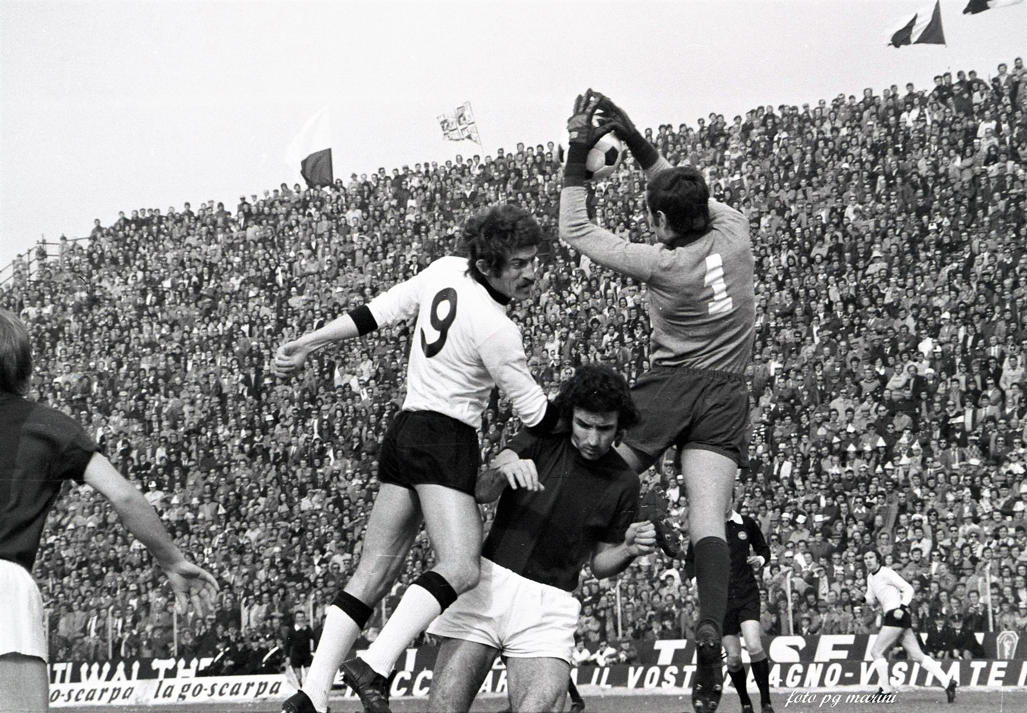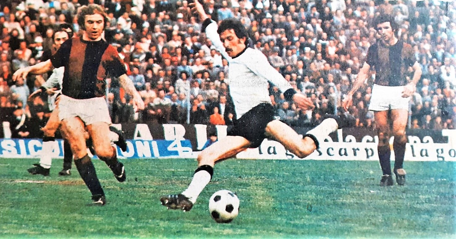 È il mio primo derby in campionato con il Bologna. Una partita sentitissima, sebbene l’allenatore felsineo Bruno Pesaola in settimana avesse gettato benzina sul fuoco, dicendo che i giocatori del Cesena erano soprattutto “podisti” e che i bianconeri erano destinati alla retrocessione in B. Parole incaute che lo faranno masticare così amaro, a tal punto da non presentarsi davanti ai cronisti nel post partita. Probabilmente Pesaola non sapeva dei trascorsi tra gli emiliani e i romagnoli, in particolare della batosta (5-0) subita al campo dell’ippodromo nel campionato di Guerra 1944, quello celebre vinto dai Vigili del Fuoco di La Spezia. Cesena da non sottovalutare quindi. È una bella giornata di sole, la temperatura è mite. Una domenica che da bella diventerà indimenticabile. Il fischio di inizio è alle ore 15 e io parto con buon anticipo da casa mia a Sant’Agostino. Lungo il tragitto che percorro a piedi, nella discesa di San Pietro, un signore distinto piuttosto grosso, ben vestito con un grande cappello, mi chiede indicazioni per lo stadio. Gli rispondo che basta che segua me o il flusso delle numerose persone perché tutti andiamo alla Fiorita. Senza che gli chiedessi niente comincia a dire che lui è venuto ad assistere alla certa vittoria del Bologna e, davanti alle mie risate, stizzito tira fuori un grosso portafogli dicendo che era pronto a giocarselo… La tipica boria di alcuni bolognesi, quelli che dicono che loro sono primi in tutto, soprattutto in cucina. Ne conosco qualcuno che ogni tanto me la mena sulle loro lasagne a sette strati superiori alle nostre, sulle nostre presunte fettuccine mentre le vere tagliatelle più larghe e più spesse sono le loro. Per non dire del ragù, il loro è il primo al mondo, oppure della loro superiorità sui bolliti che noi (secondo loro) conosciamo a malapena.