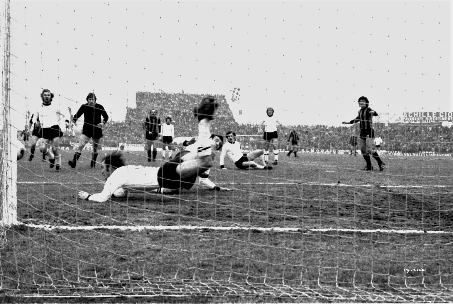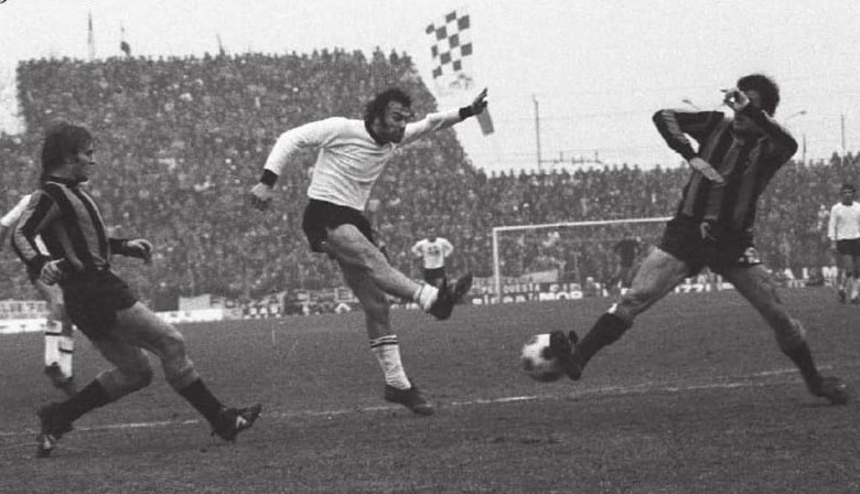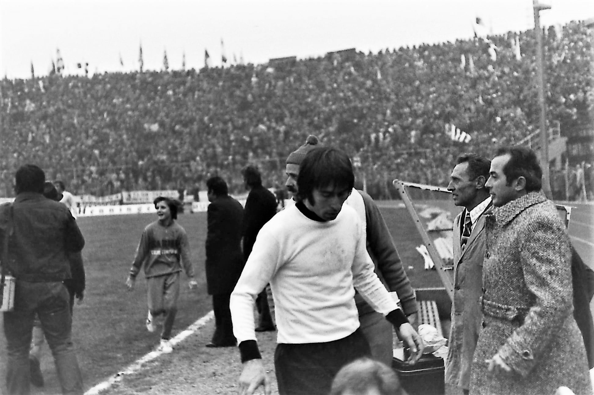 La mia ansia di andare allo stadio era notevole, c’era da vedere il mio giocatore preferito (a prescindere dalla squadra) Roberto Boninsegna, e i vari Mazzola, Facchetti e Burgnich allenati dal mito di quei tempi: il mago Helenio Herrera. Purtroppo a casa c’erano parenti così partii (da solo come quasi sempre) un po’ tardino. Arrivato al Curvone mi accorsi che c’era già quasi il pienone e trovai posto a metà dei gradoni, sulla sinistra verso la tribuna. La giornata era grigia il freddo pungente.