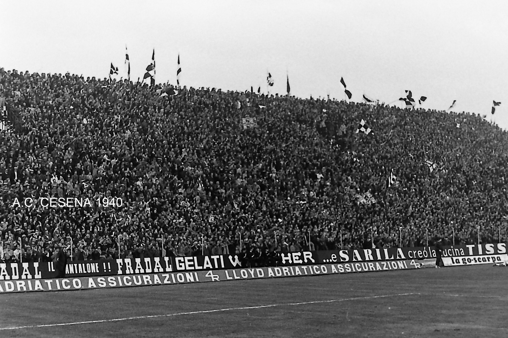 Il Cesena veniva da tre sconfitte consecutive e con il Milan, nonostante il suo blasone, era d’obbligo la conquista di almeno un punto. I miei ricordi sono questi: appena il tempo di pranzare e mi precipito allo stadio, ma non c’è modo di salire sugli scaloni di legno perché di fronte ho un muro di persone. Percorro la Curva Sud per tutta la sua lunghezza e mi accomodo su uno scalino di cemento verso la gradinata, naturalmente in piedi, condividendo un ipotetico posto con almeno un’altra persona. Per tutta l’incontro vedo più nuche e cappelli che campo di gioco, anzi a dire il vero quando una delle due squadre è in zona di attacco, e l’azione diventa pericolosa, è tutto un groviglio di teste, braccia e mani che roteano…